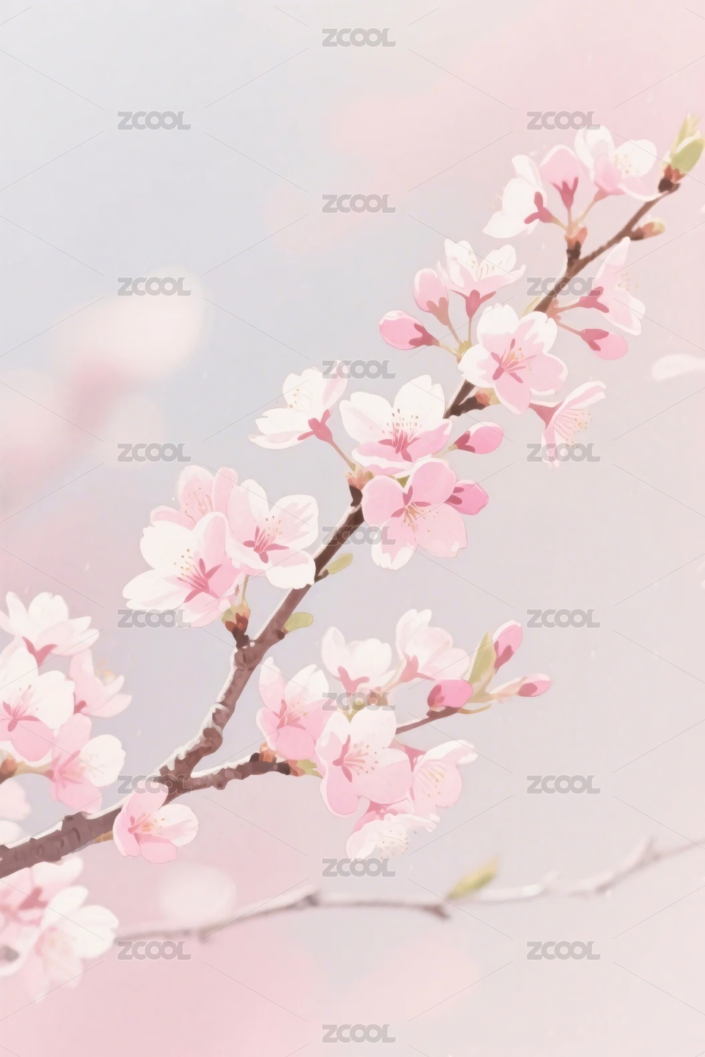 中国风,国风,国潮,桃花,桃树,桃枝,迎春花,工笔画,纯色,古典