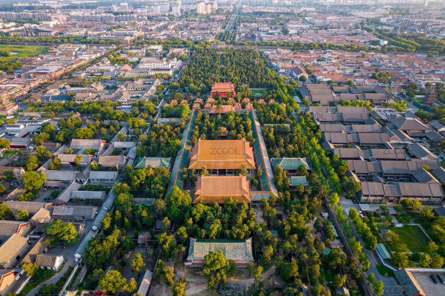 中国山东省济宁市曲阜市曲阜孔庙航拍