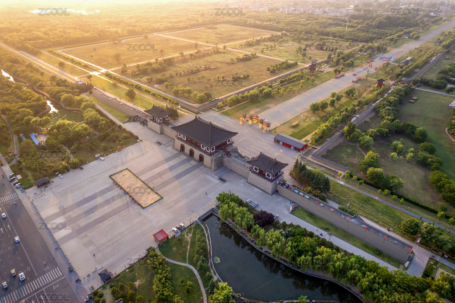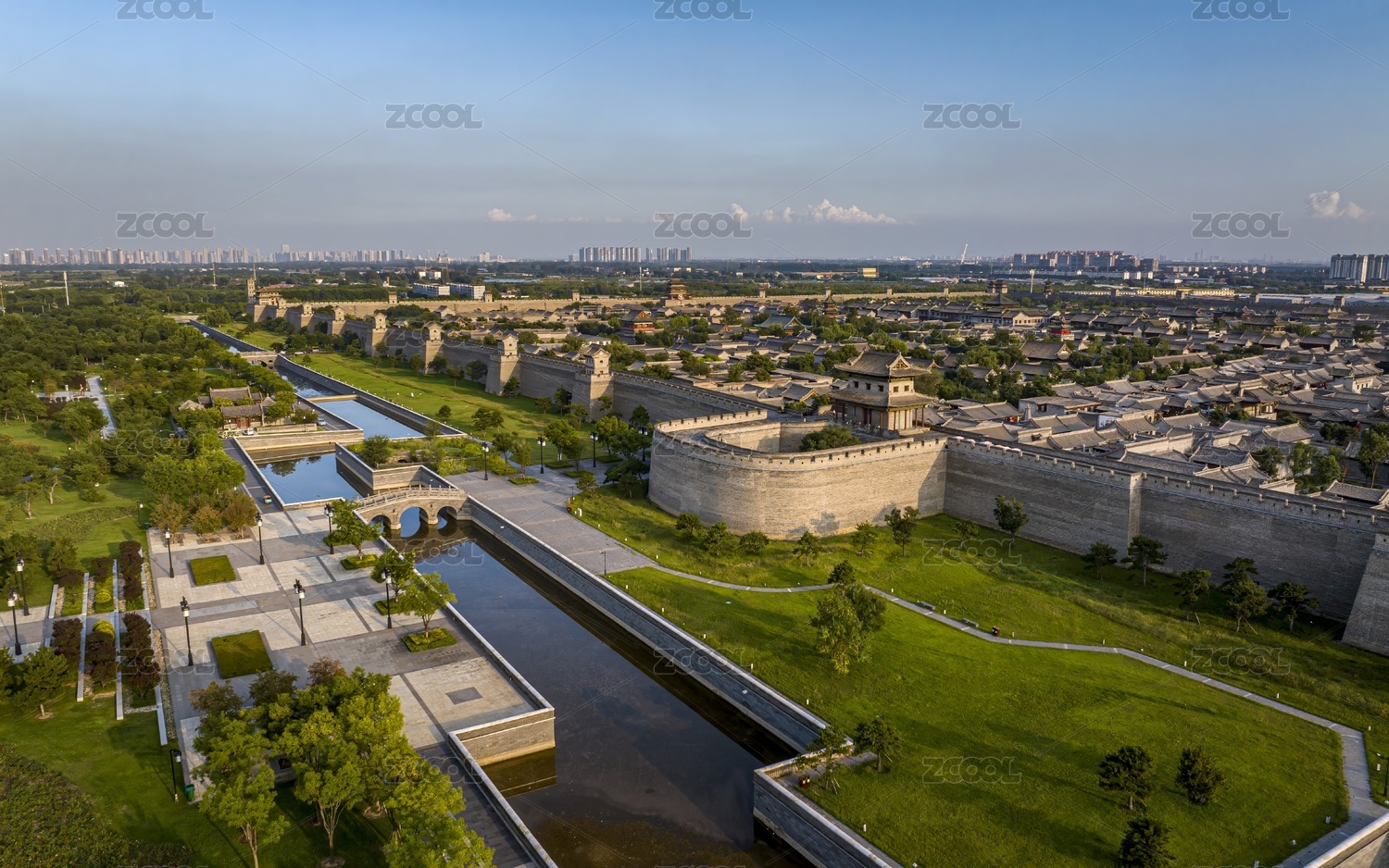 航拍河北省石家庄市正定县正定古城墙长乐门