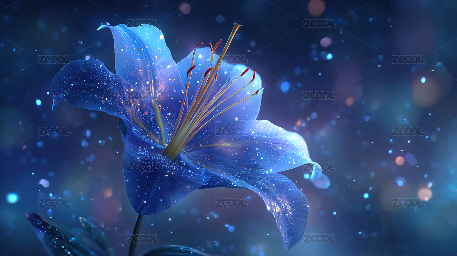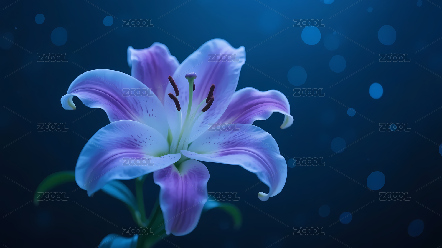 百合花,紫色,花瓣,深蓝,梦幻,宁静,光点,渐变,自然,植物