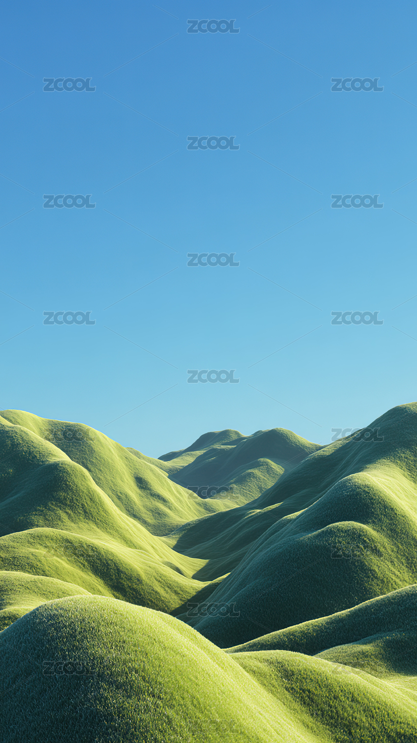绿色山丘渐变天空