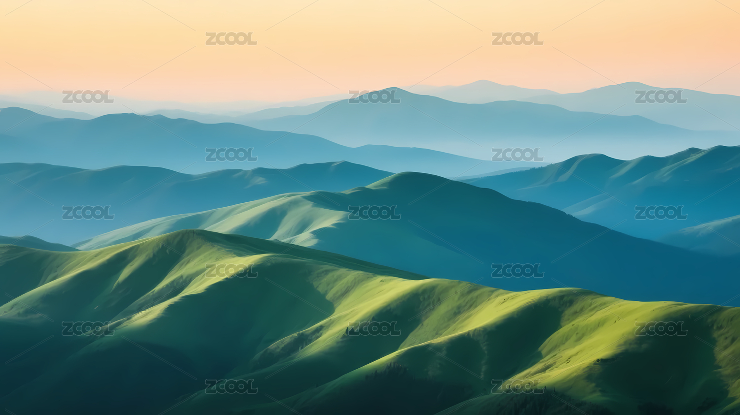 清晨的绿色山峦