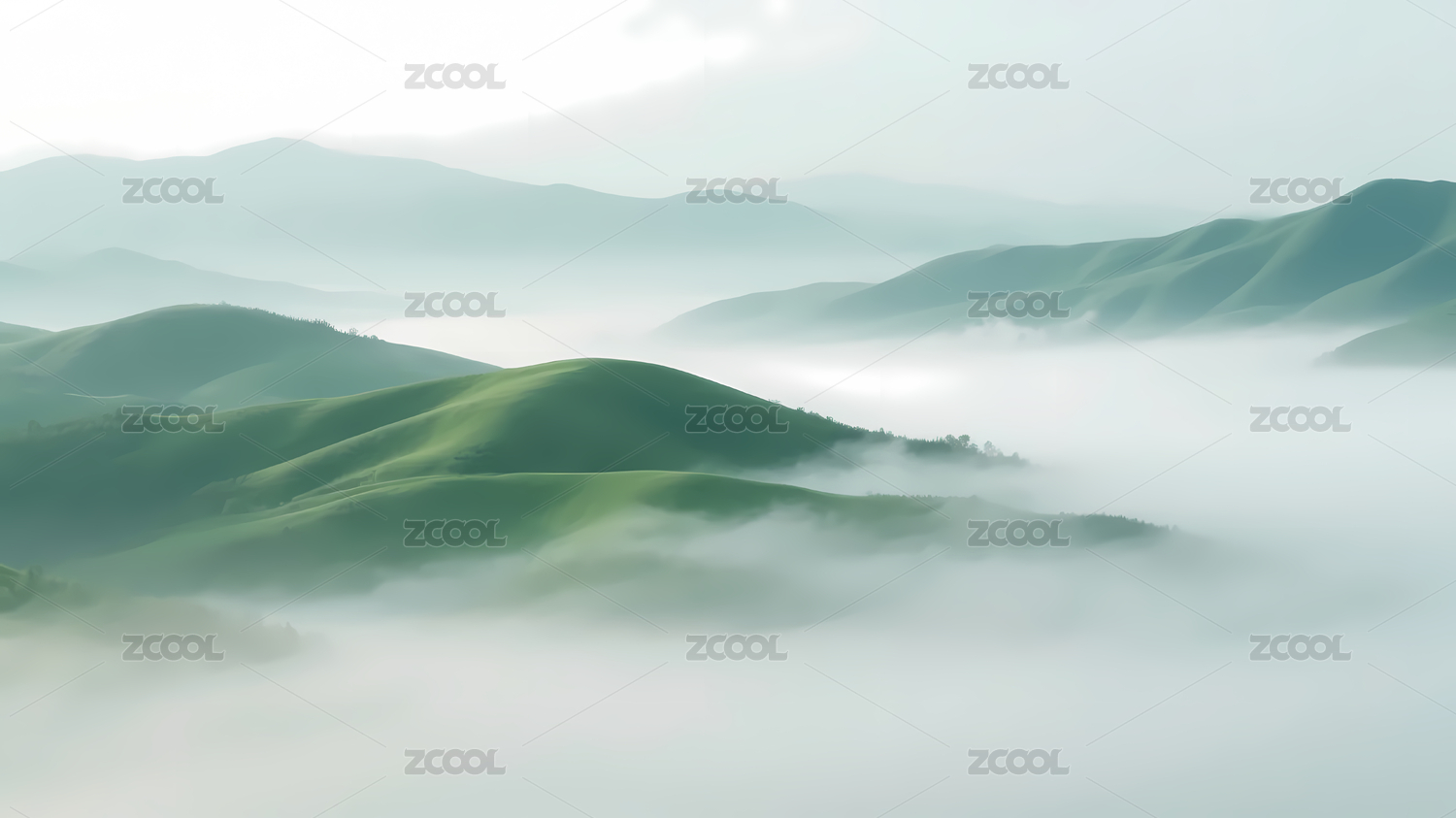 绿色山丘与薄雾背景