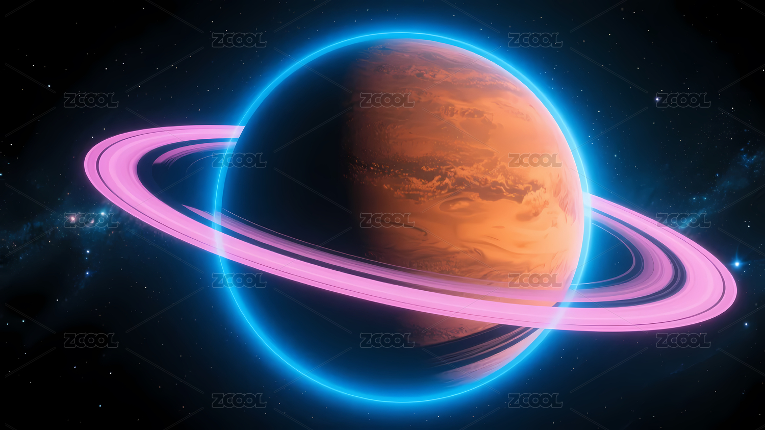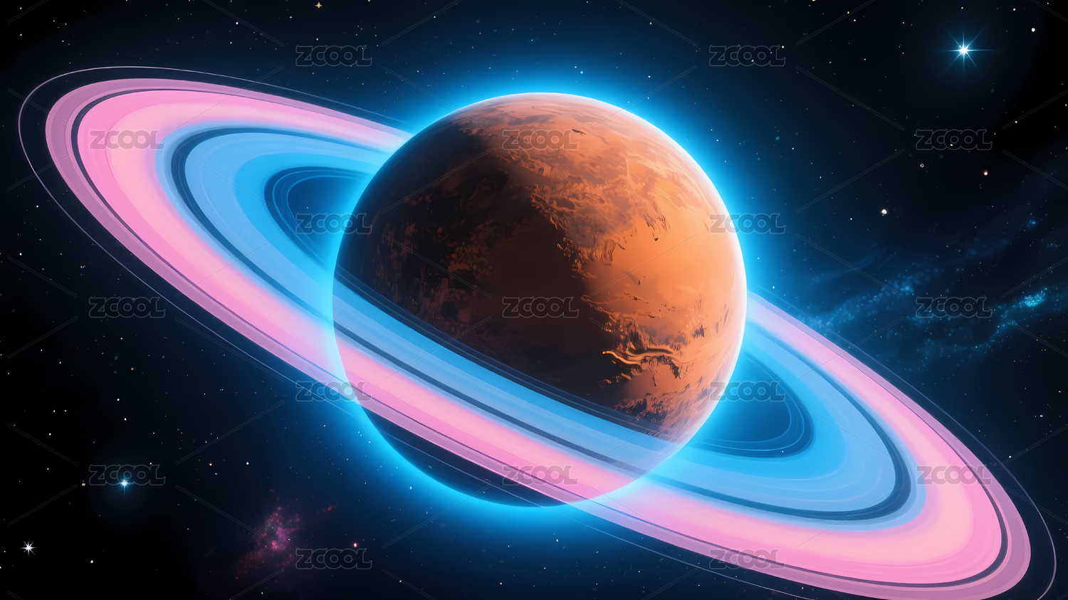 粉光环宇宙橙蓝行星