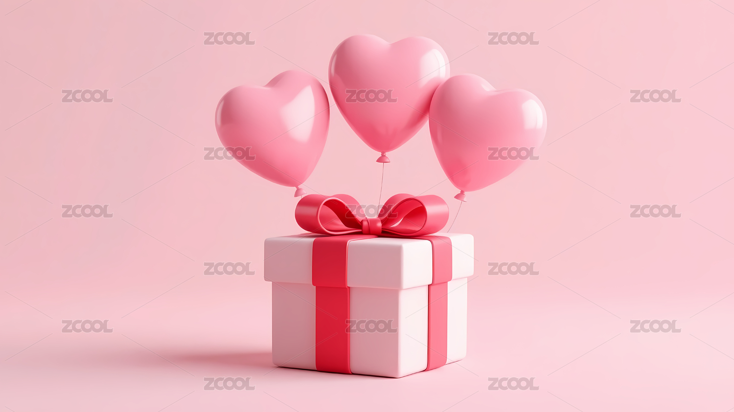 粉色礼盒与心形气球