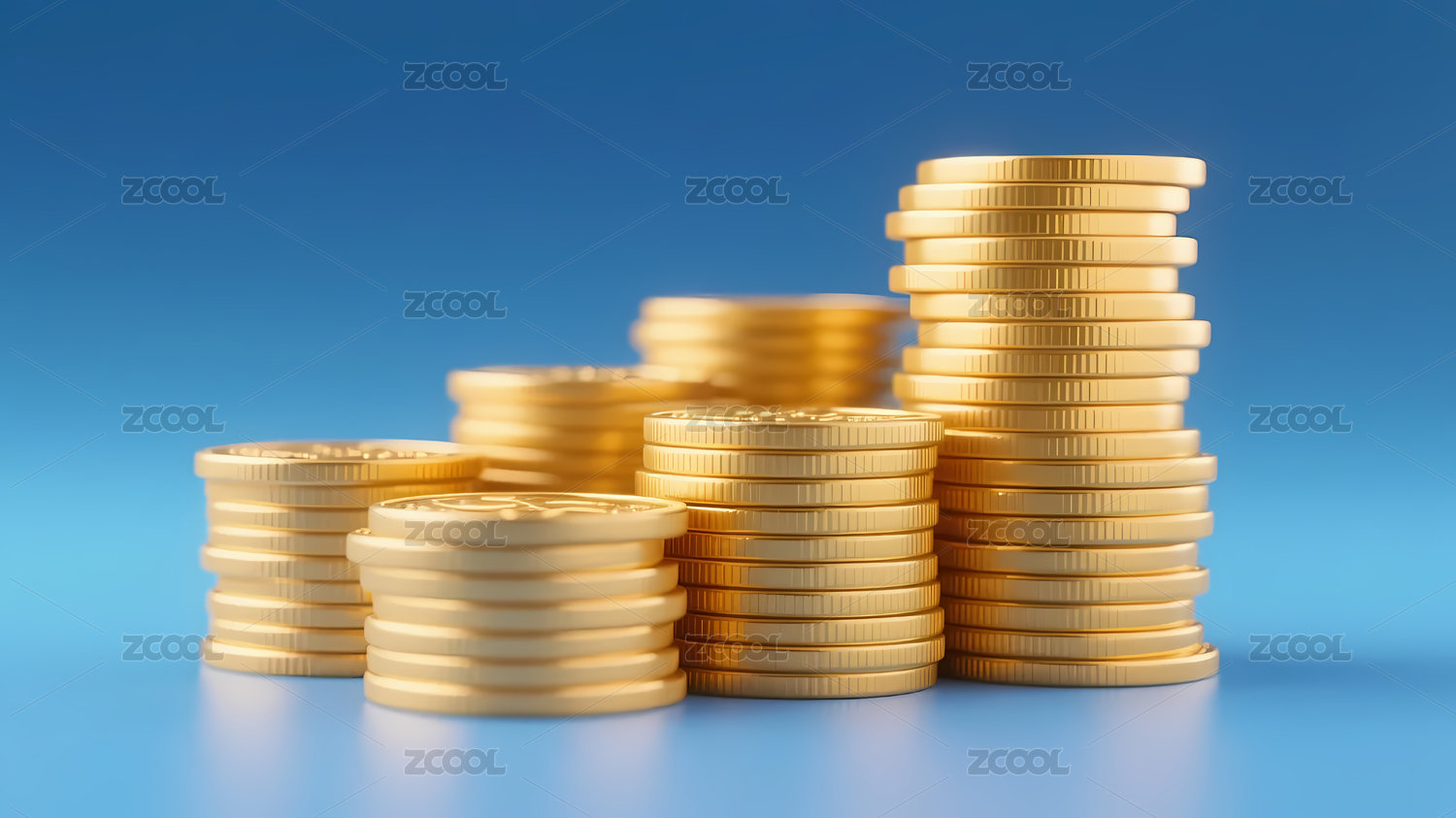 金币堆叠在彩色背景前