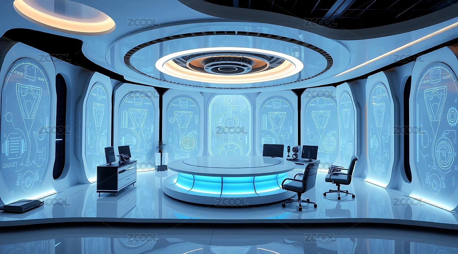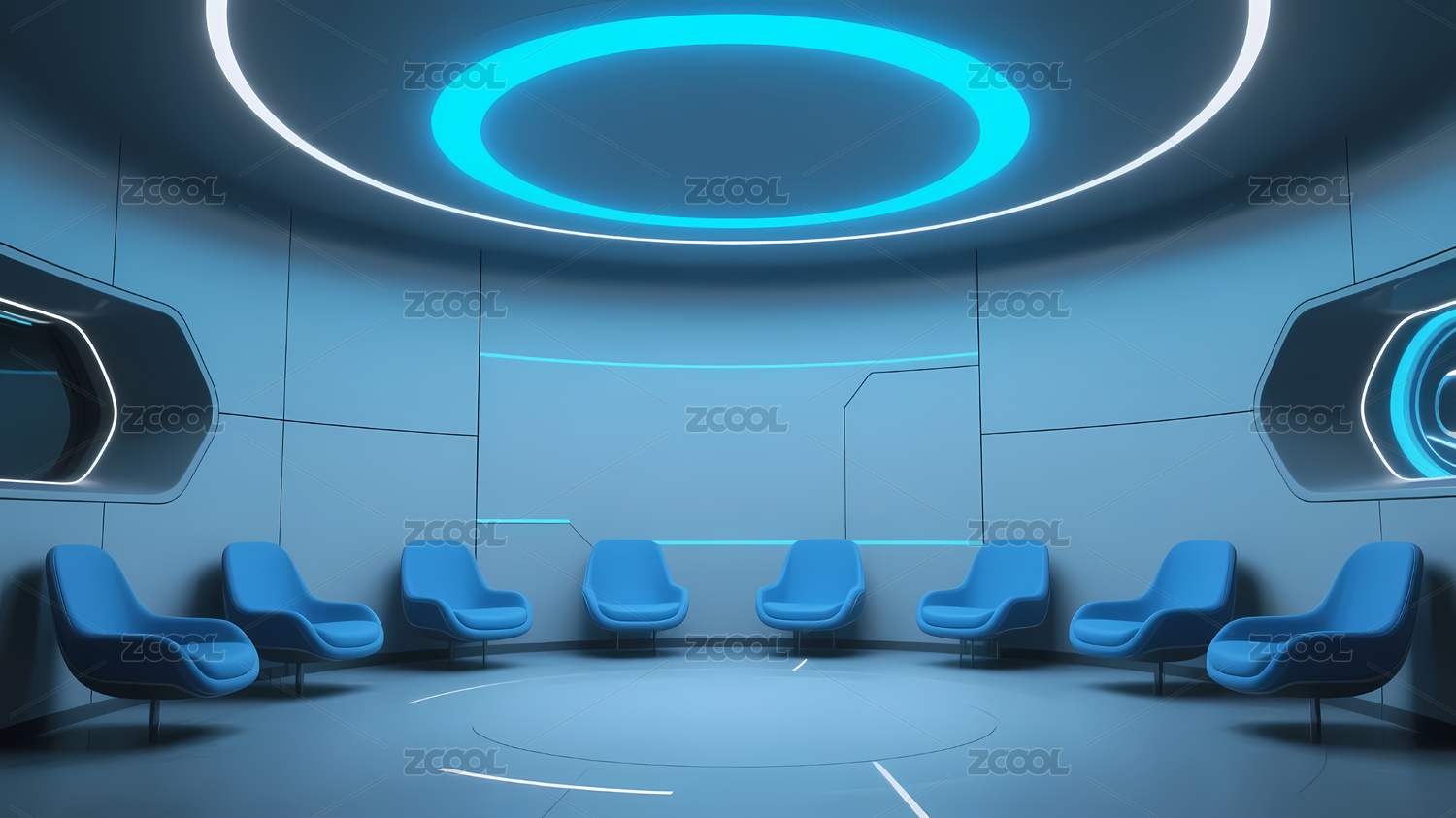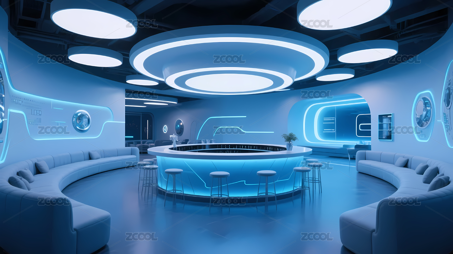 科技,蓝色,现代,装饰,几何,吧台,座椅,灯具,墙壁,室内