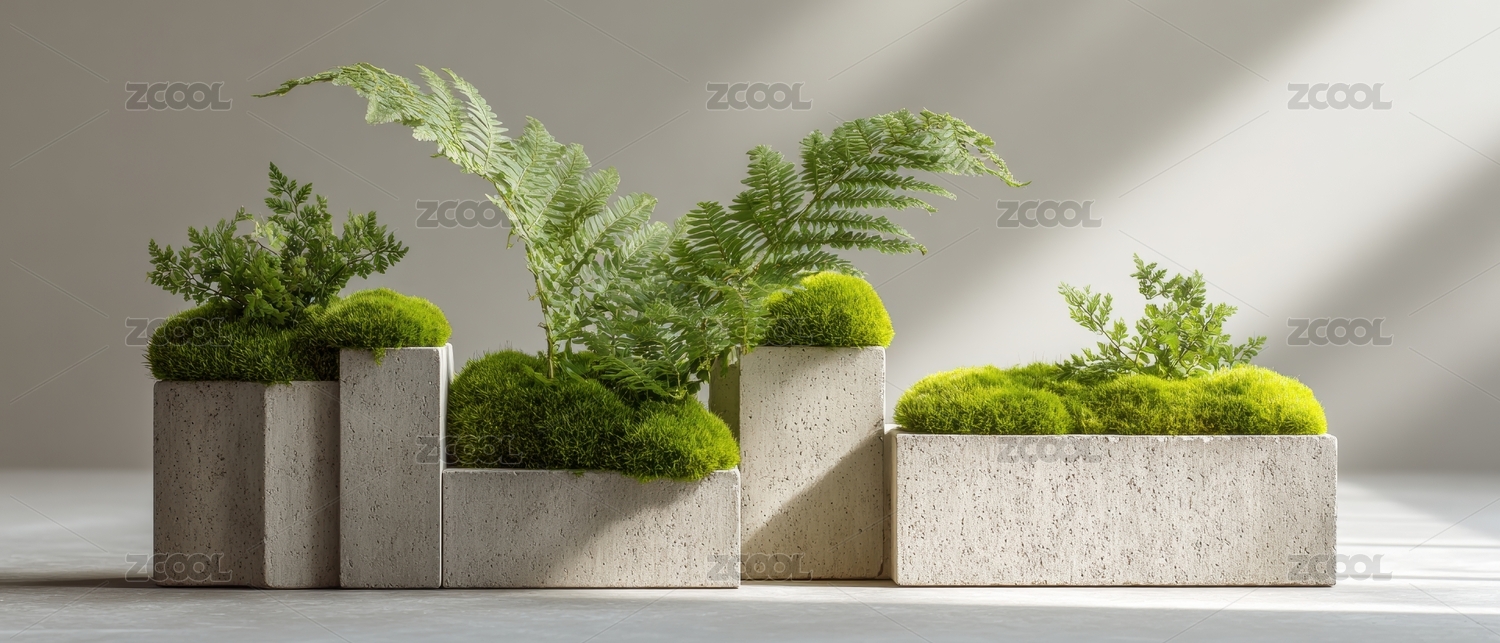 极简水泥圆柱与绿植装饰