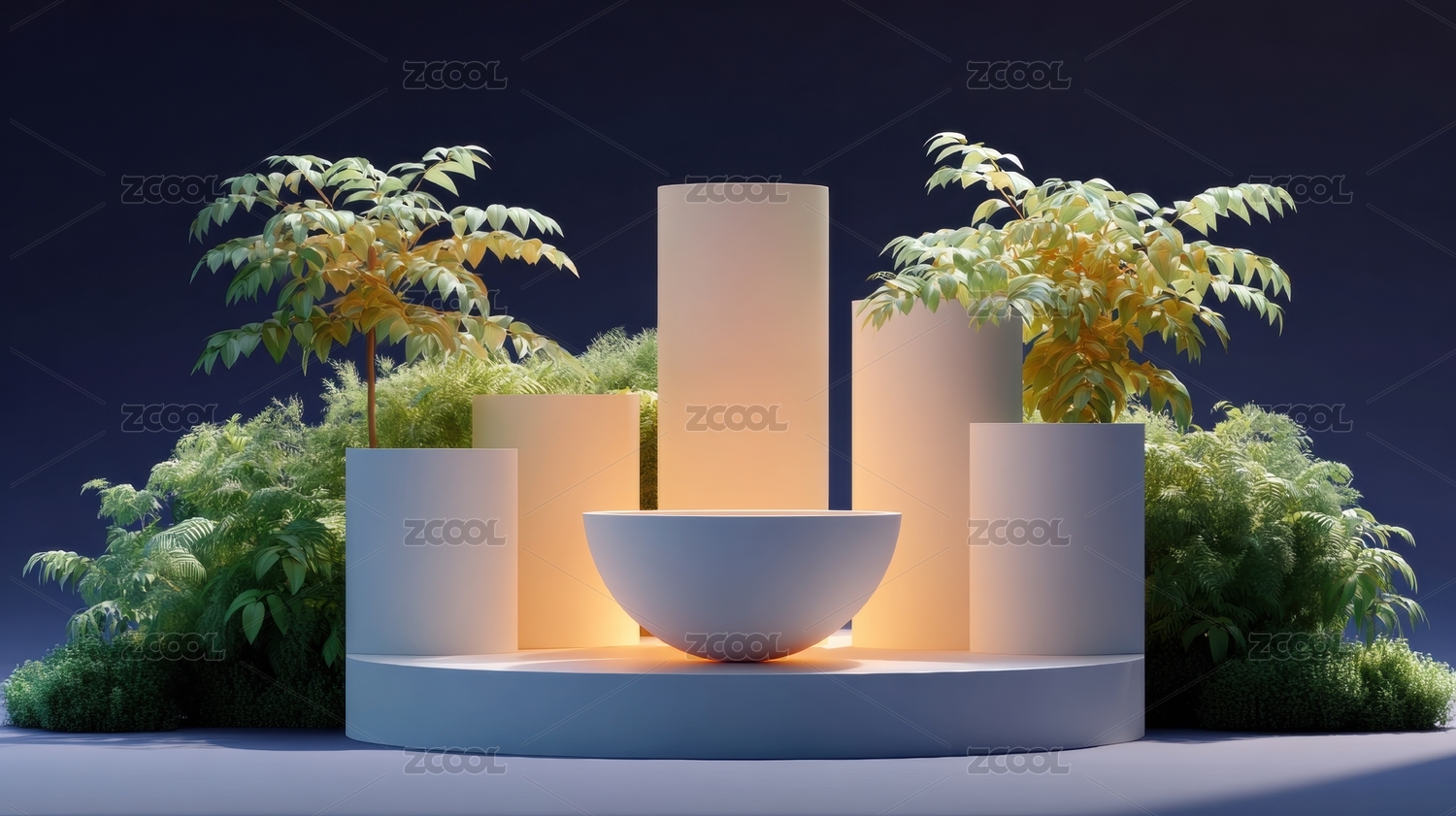 绿植石块装饰场景图