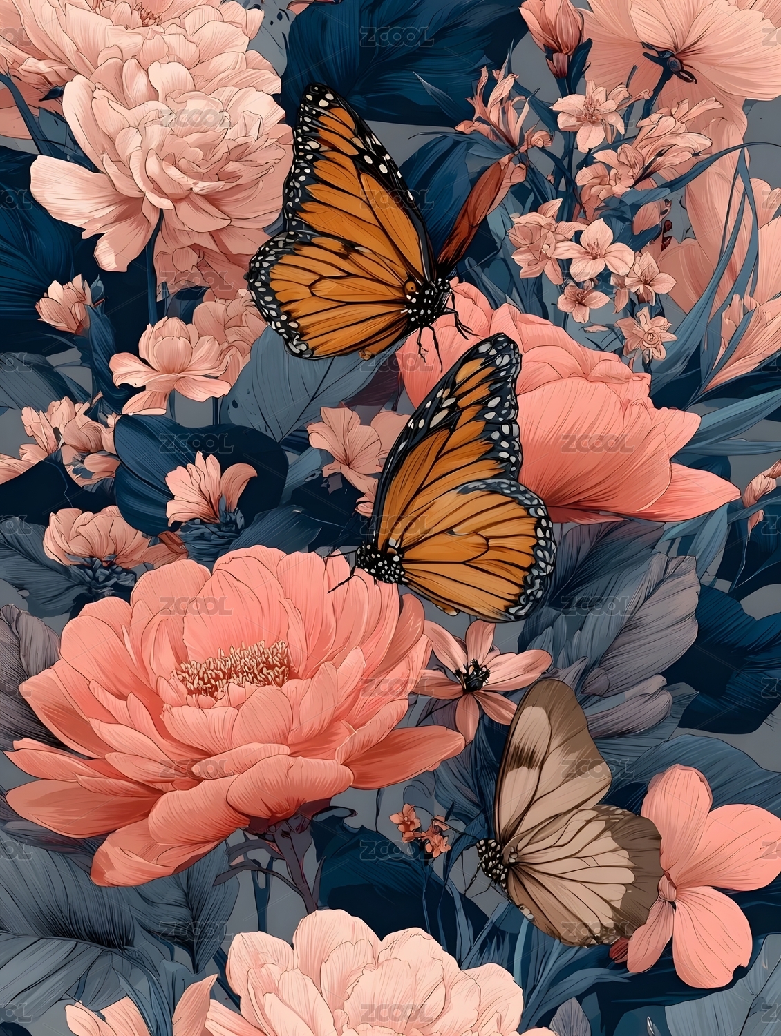 优雅花卉与蝴蝶插画