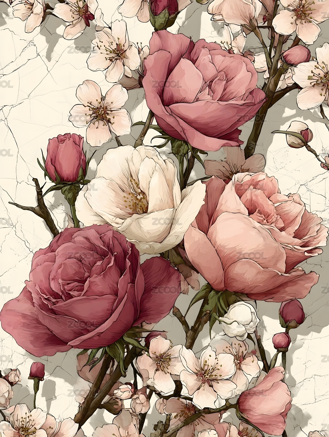 自然,绿色,黄色,花卉,花瓣,背景,装饰,叶子,花朵,复古