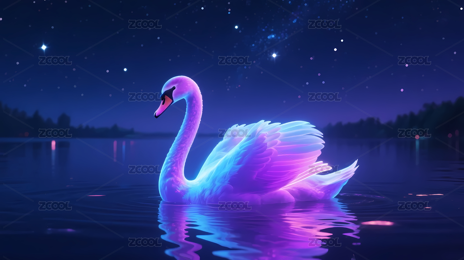 紫蓝色彩天鹅夜空湖