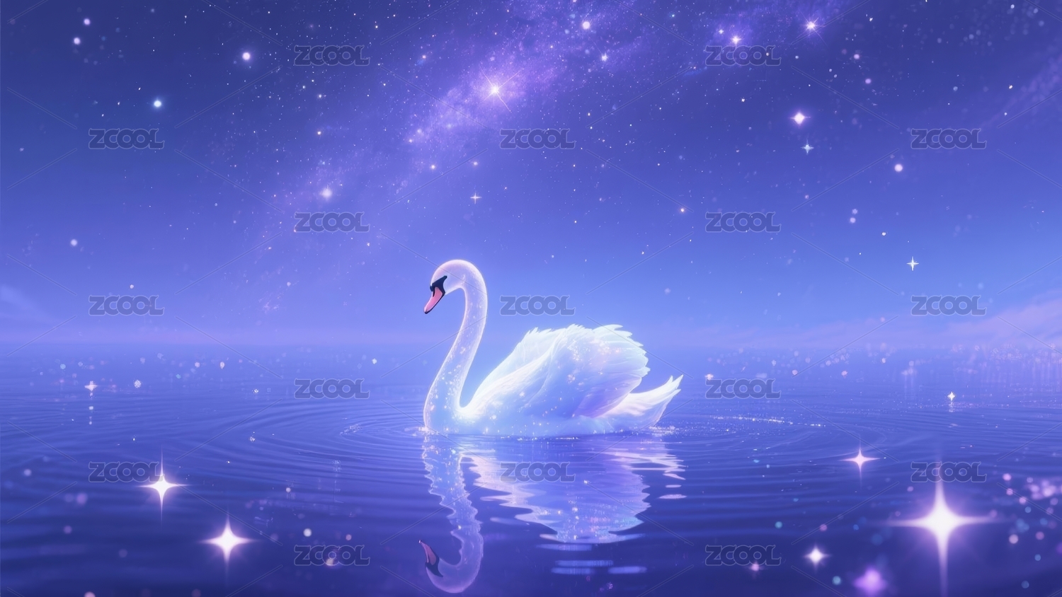 星光水面上的纯洁天鹅