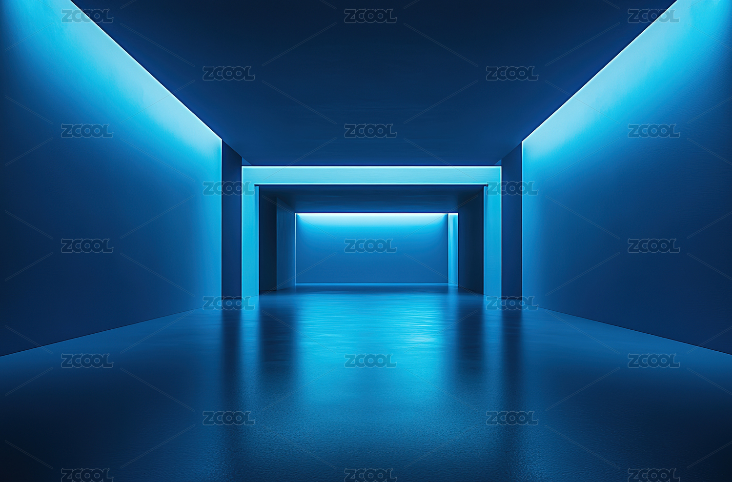 蓝色背景下的空走廊