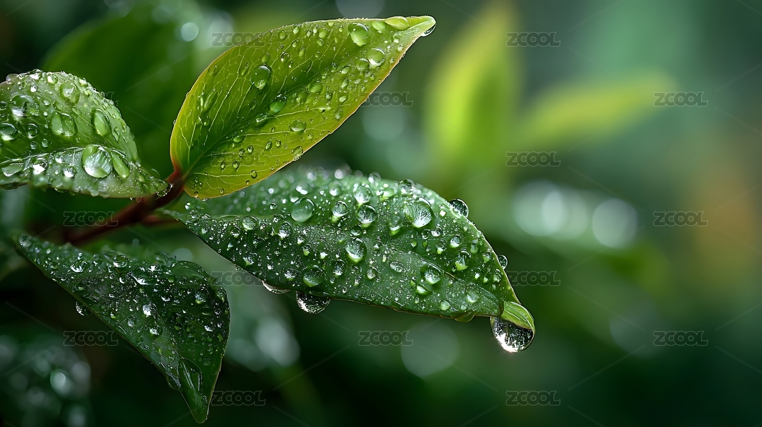 植物,自然,叶子,绿色,清新,细节,水珠,湿润,雨后,生机