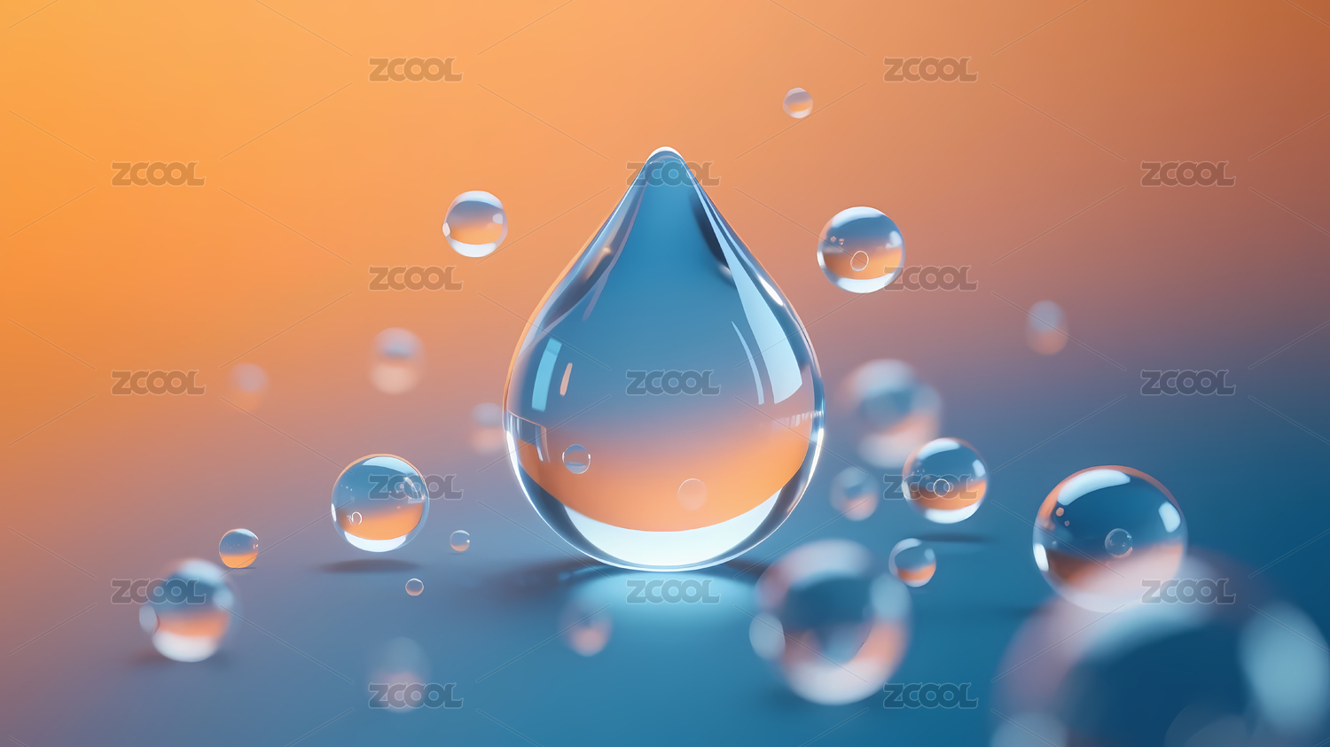 背景,蓝色,视觉,悬浮,清新,水滴,纯净,轻盈,晶莹,米黄