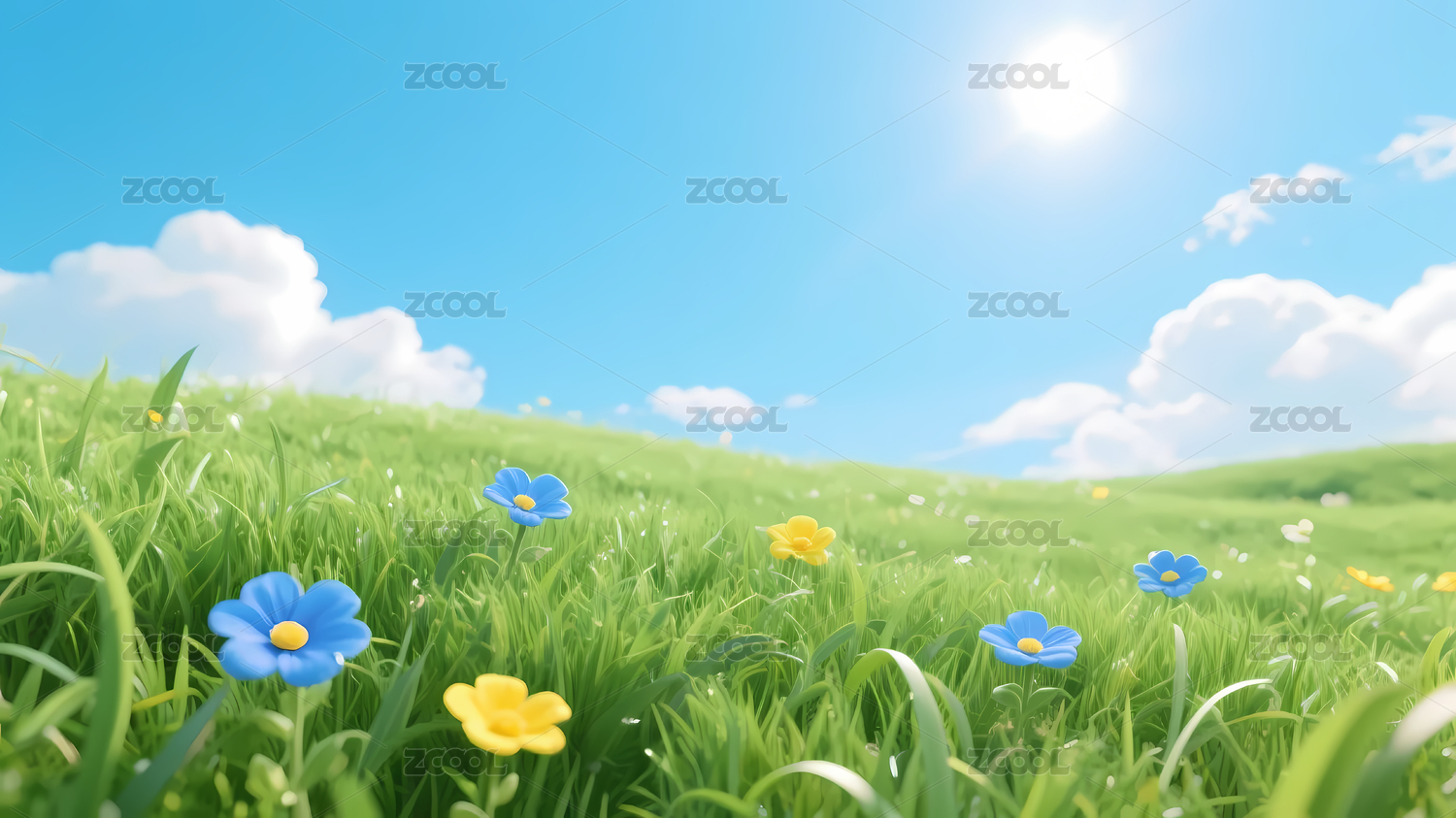 明亮,植物,蓝天,清新,自然,白云,阳光,草地,户外,花朵