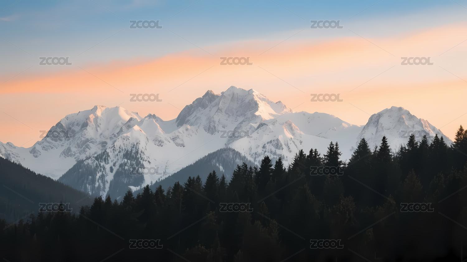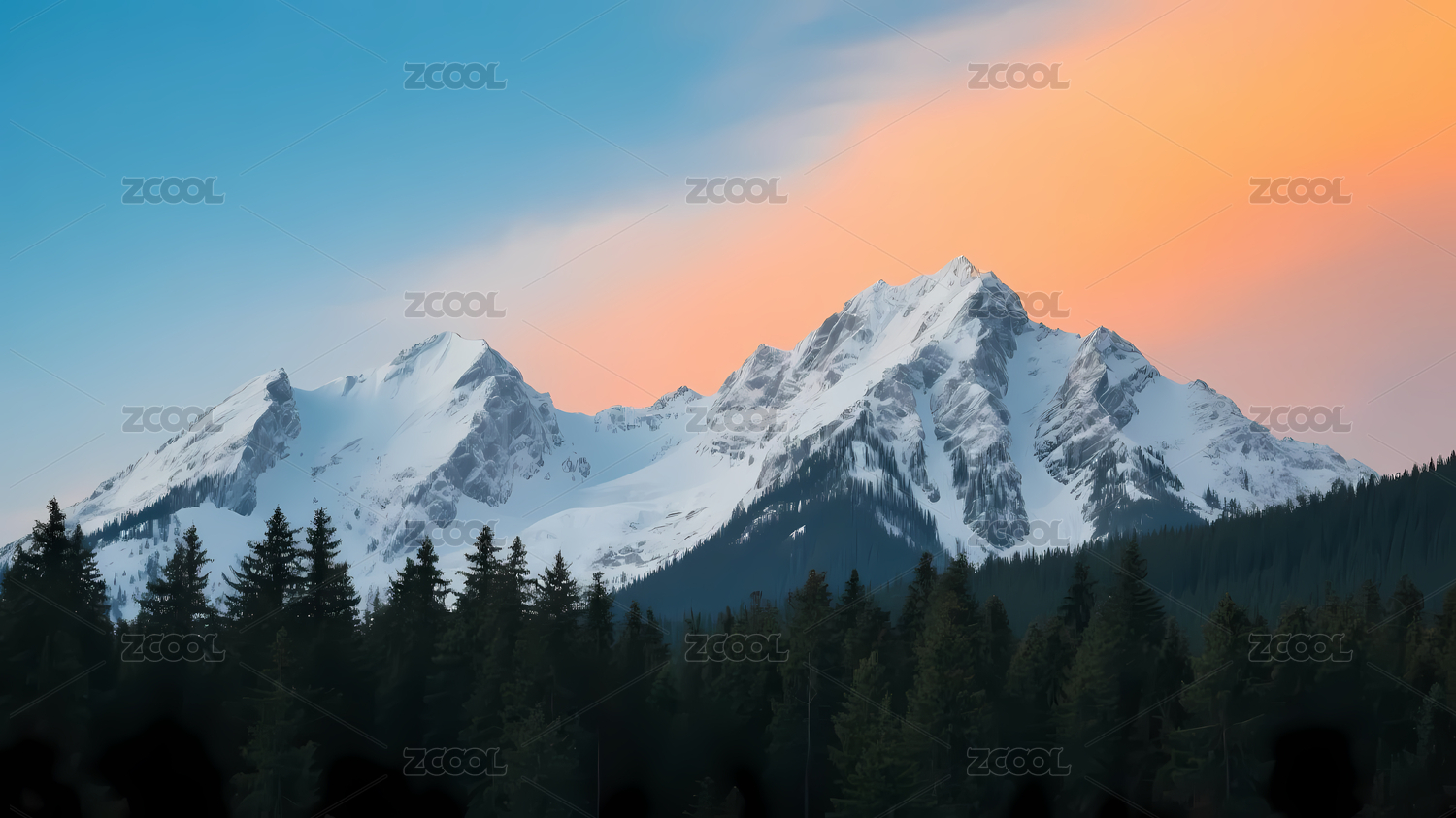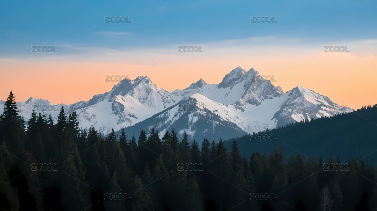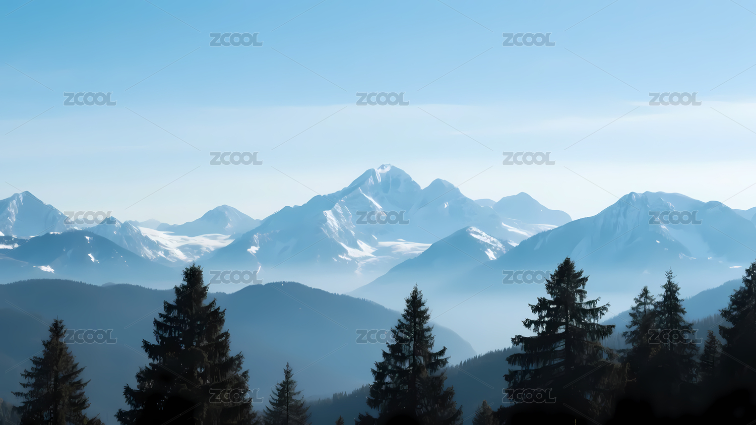 蓝天,清新,自然,户外,雪山,松林,白雪,山峰,森林,美景