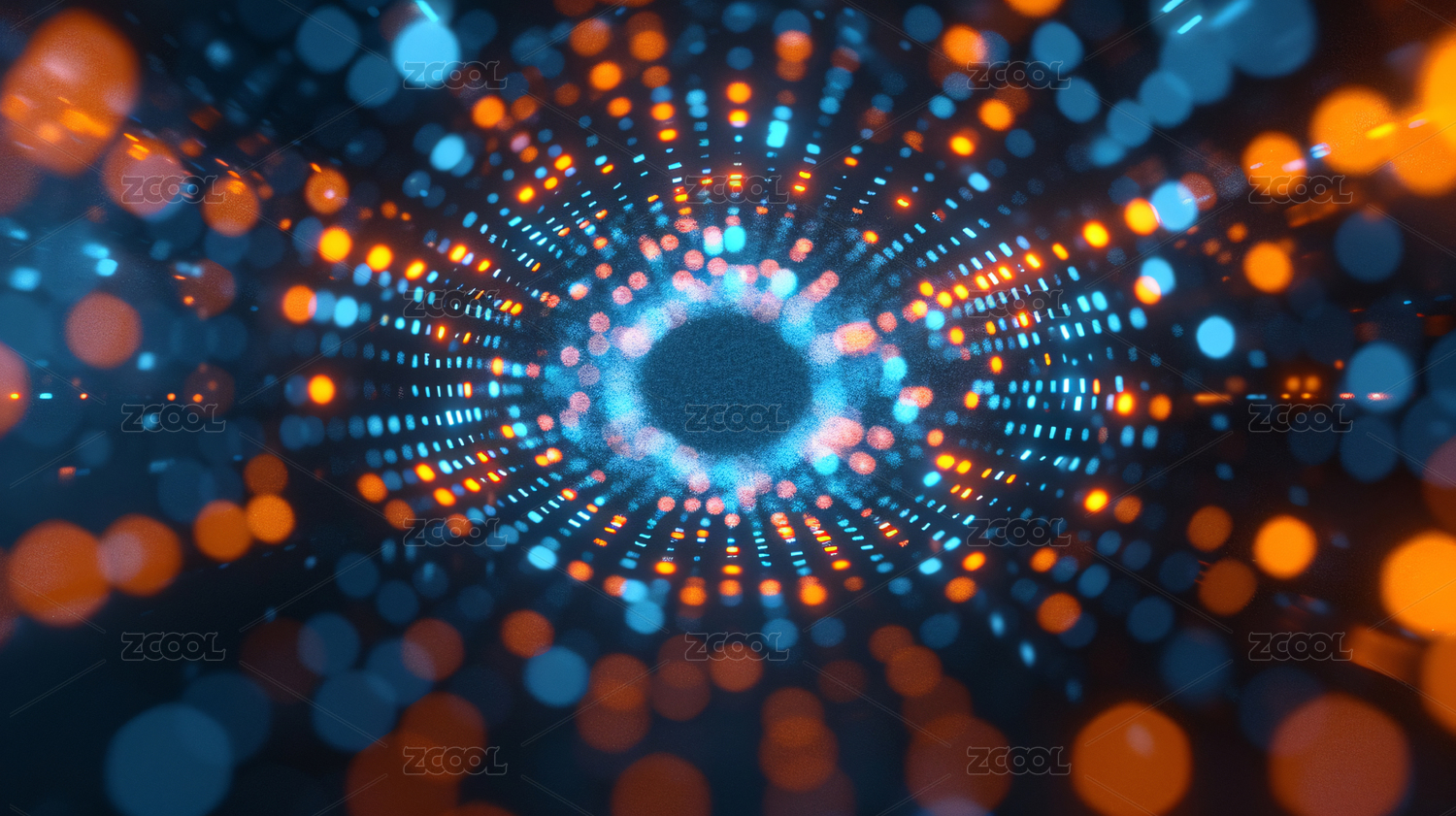 抽象,蓝色,光点,圆形,背景,深蓝,橙色,放射状,科技感,未来感