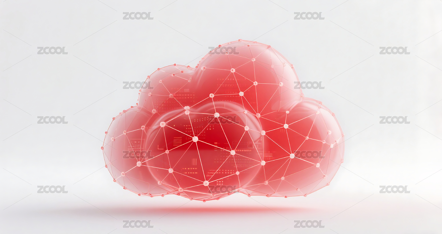 红色商务科技粒子网格云数据云朵背景