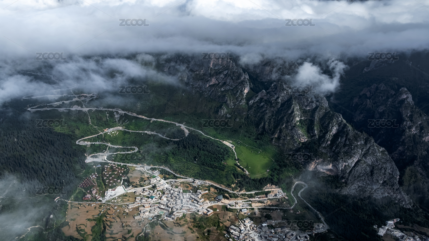 甘南,扎尕那,旅游,旅行,自然,风景,云海,航拍,高山,峡谷