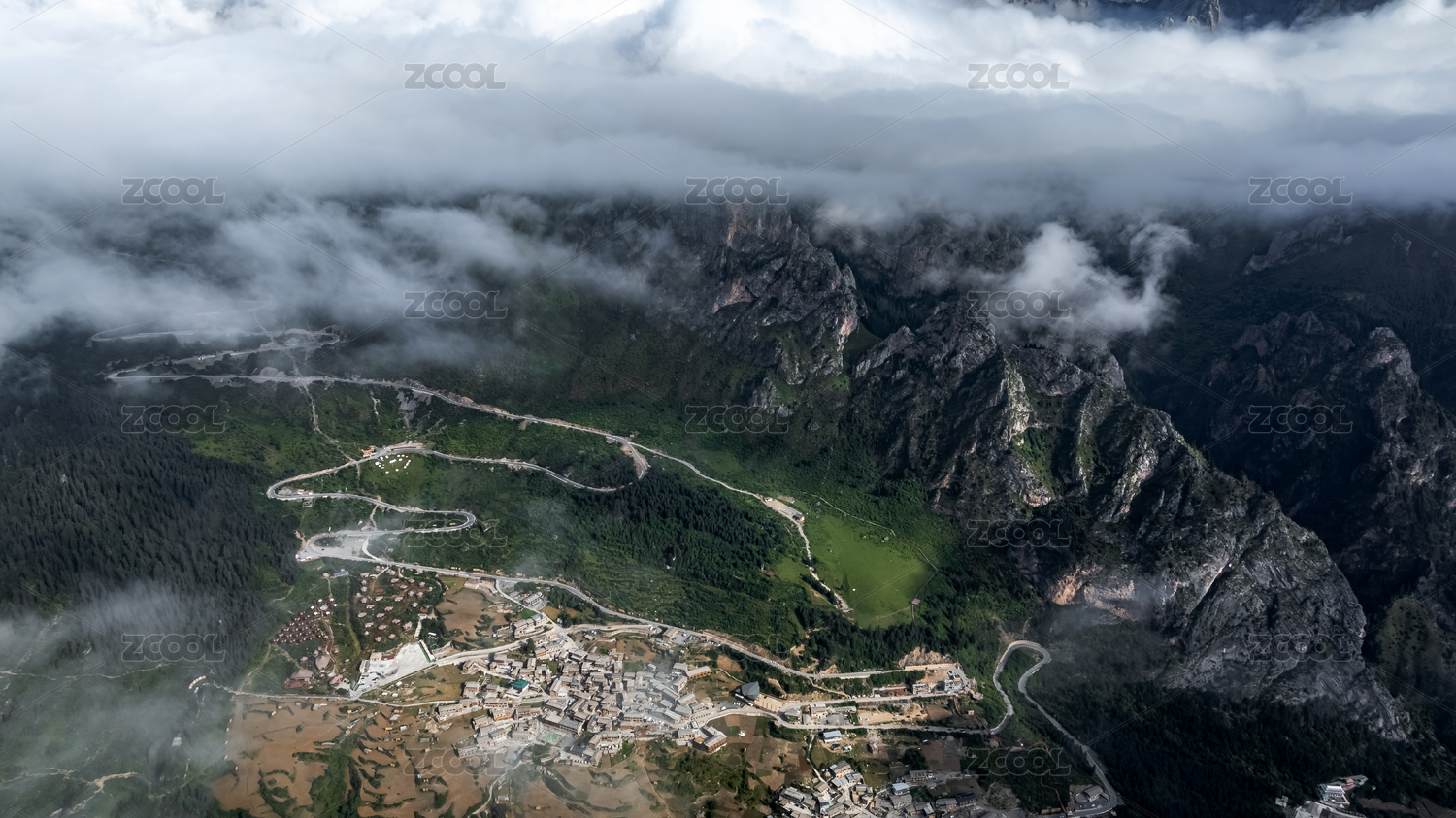 扎尕那云海村庄航拍,自然风景旅行