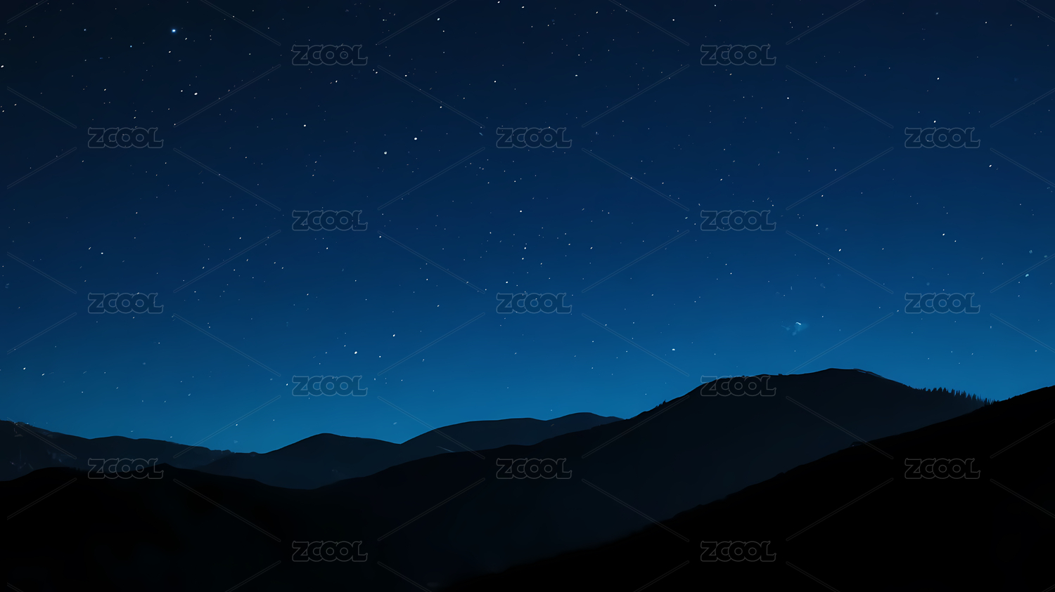 深蓝,自然,宁静,神秘,夜空,星星,山脉,轮廓,风景,宇宙