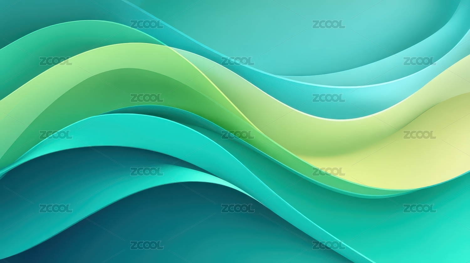 柔和,蓝色,渐变,视觉,抽象,波浪,绿色,黄色,设计,和谐