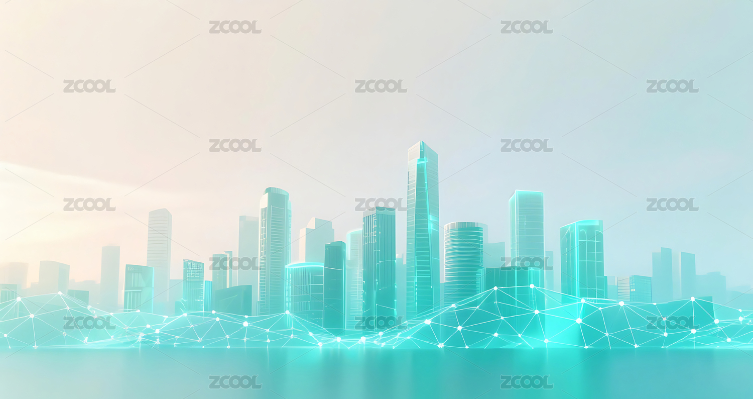 蓝绿色商务科技网络网格城市建筑天际线背景