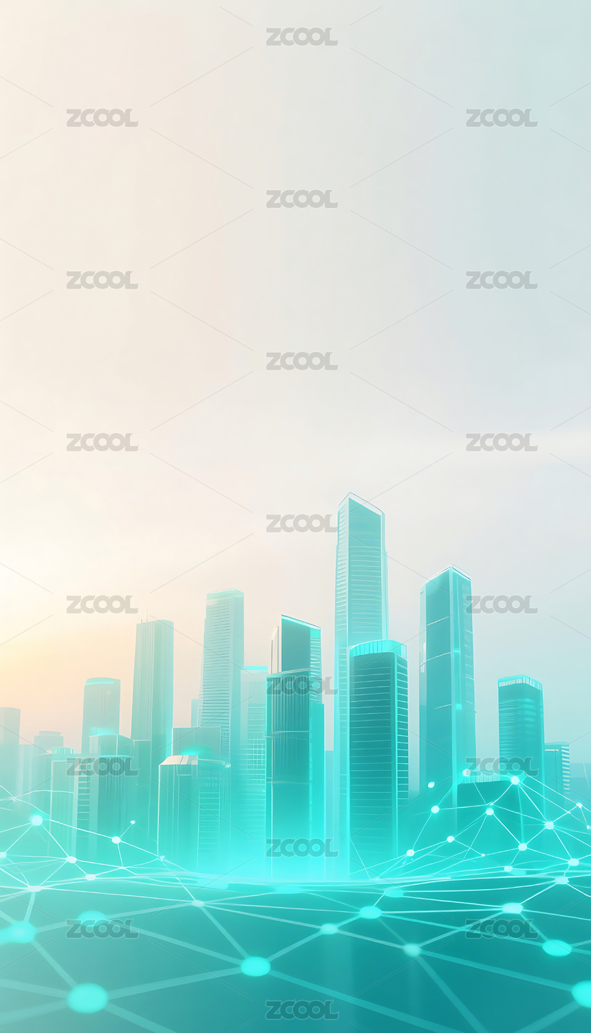蓝绿色商务科技网络网格城市建筑天际线背景