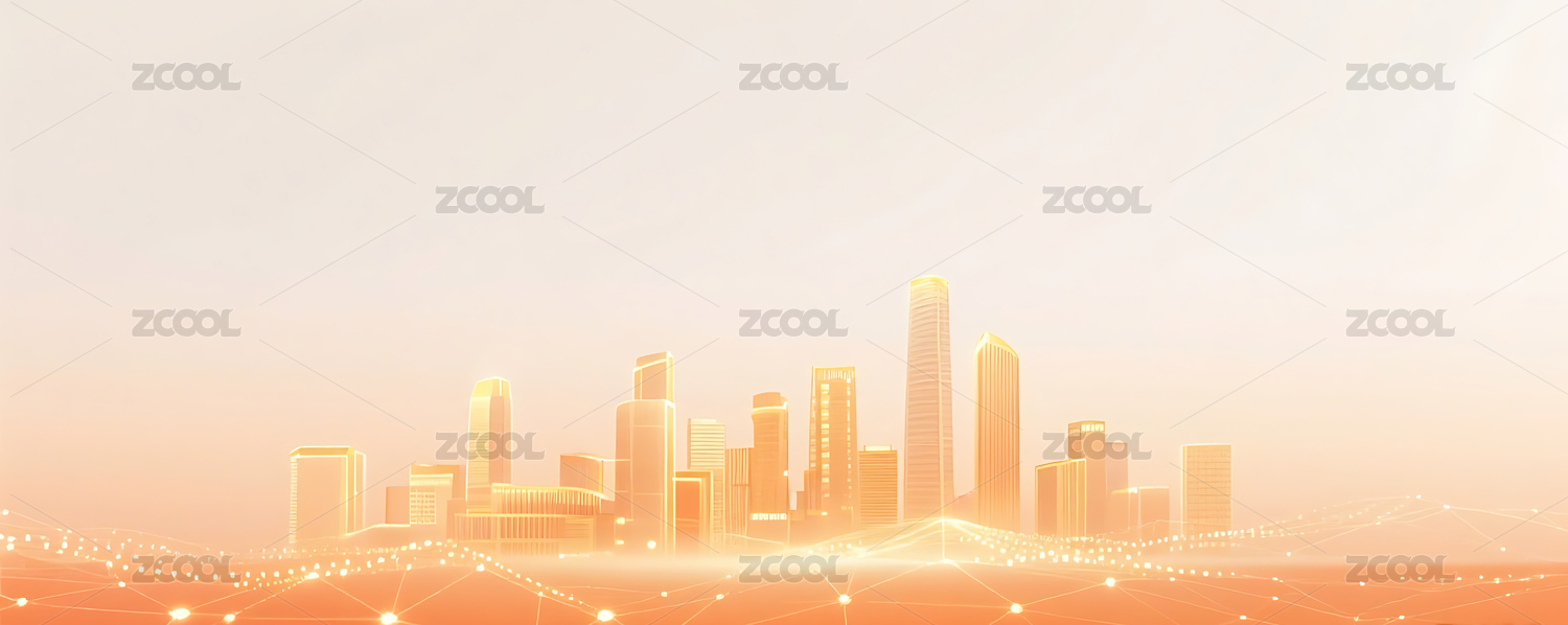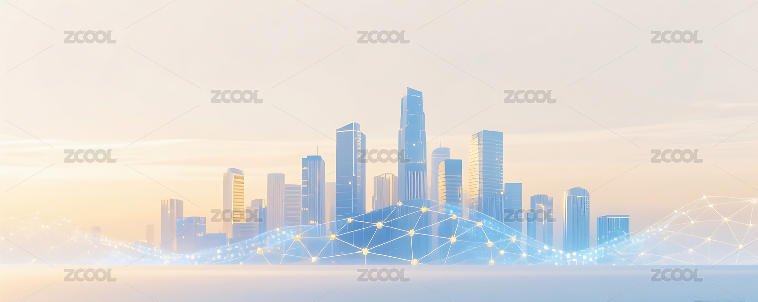 蓝绿色商务科技网络网格城市建筑天际线背景