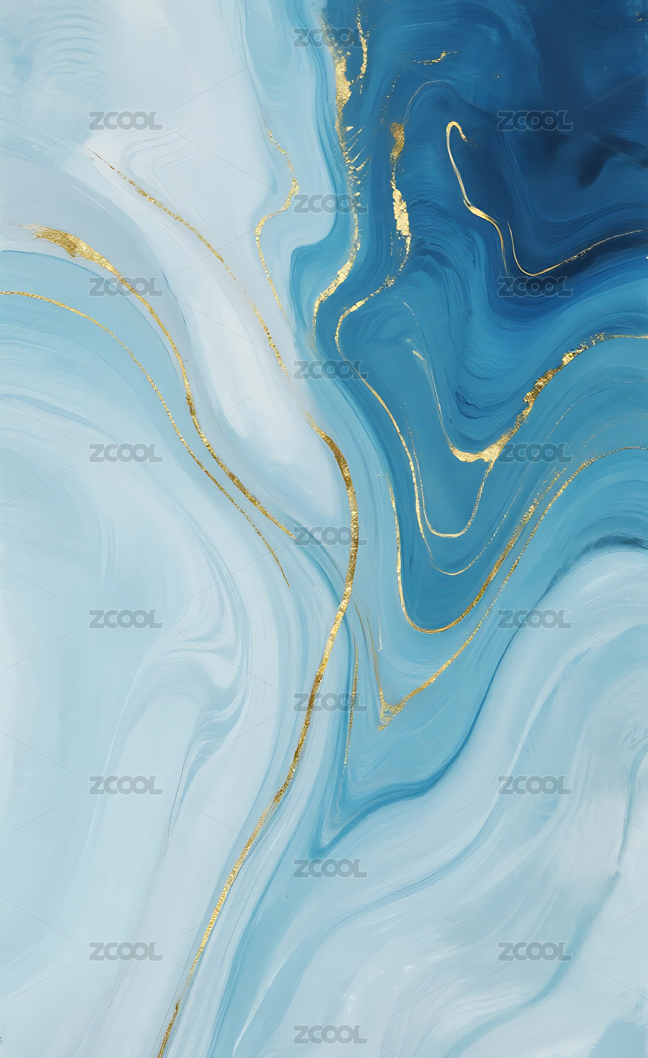 梦幻流动的蓝金抽象艺术