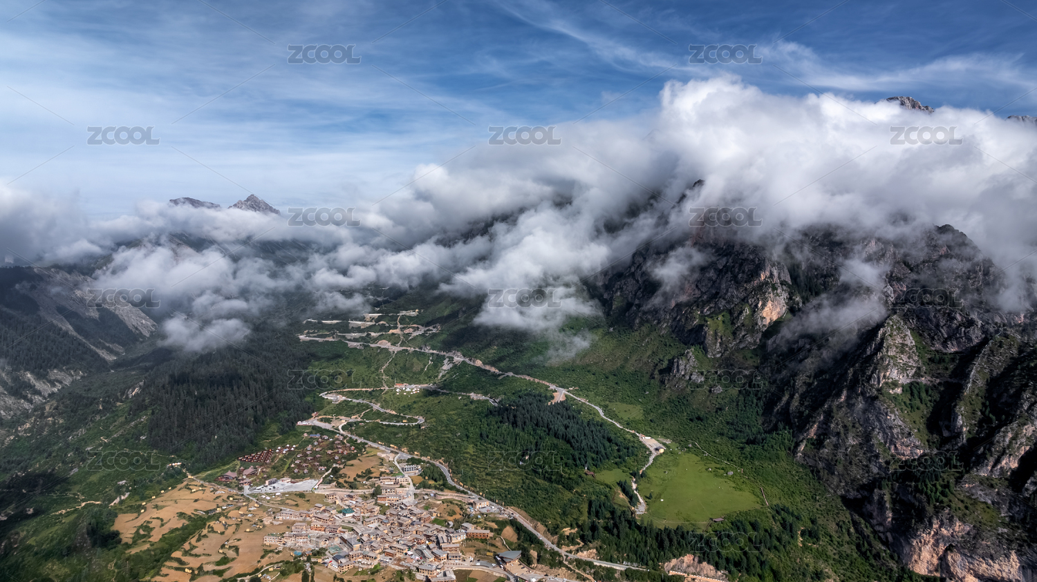 扎尕那,云海,航拍,村庄,旅游,自然,风景,四川,甘南,山脉