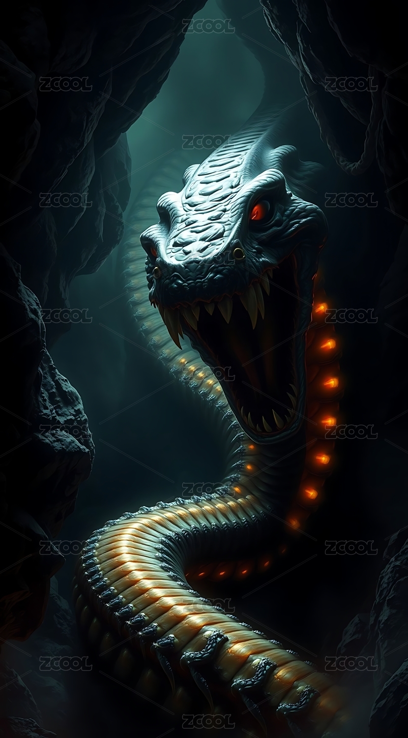 神秘的蛇在奇幻的环境中凝视