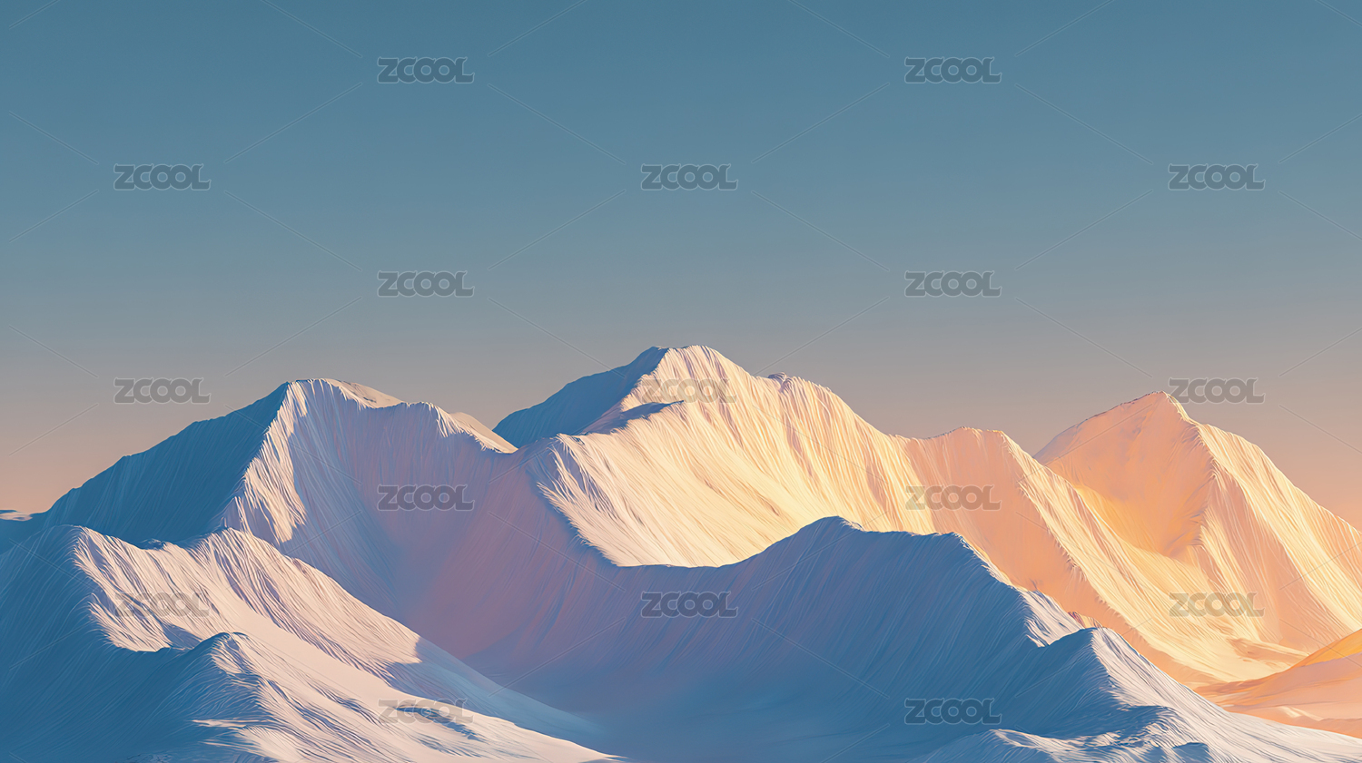 白雪皑皑的群山在晴朗的天空中俯瞰