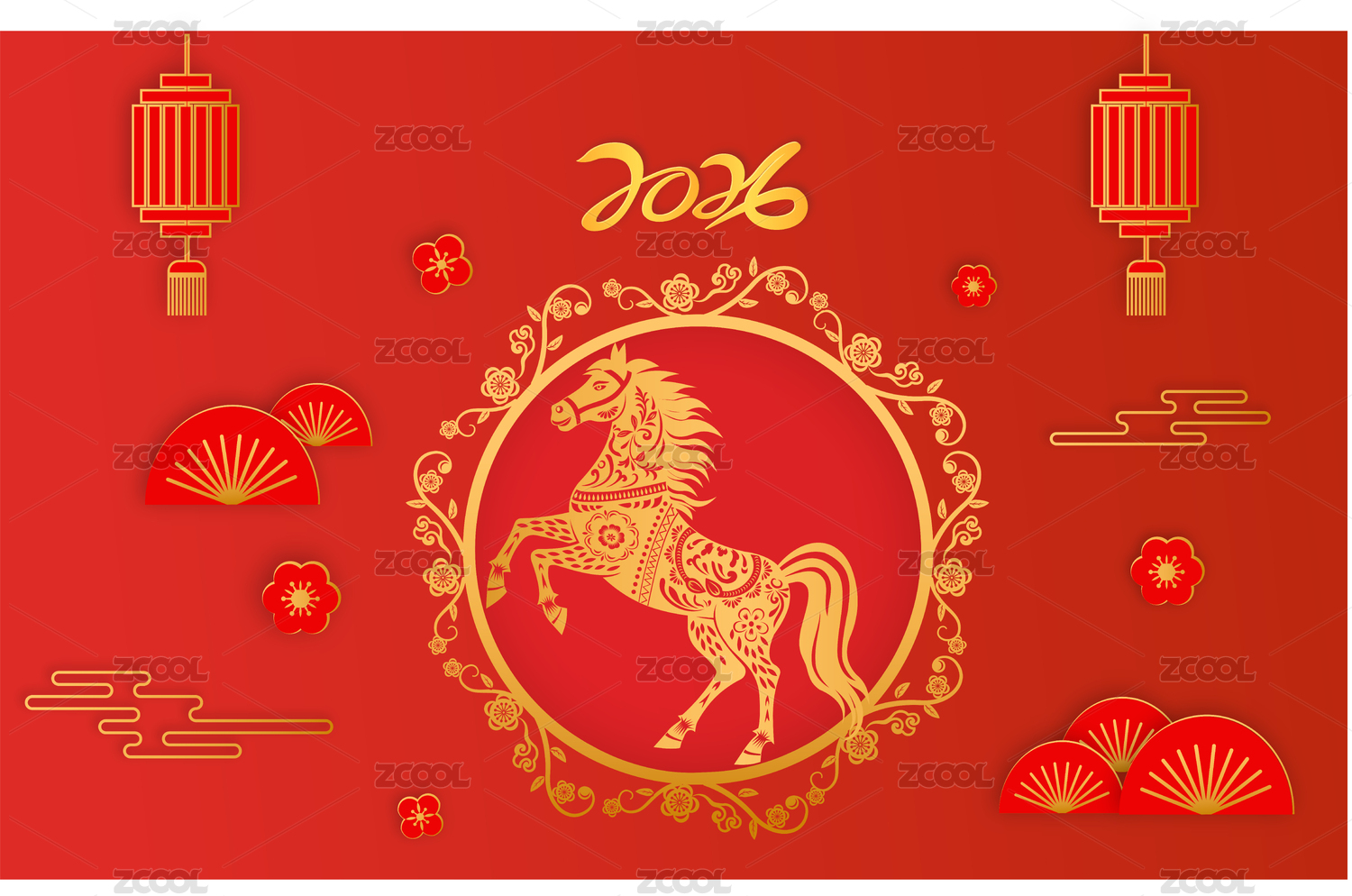 新年马年生肖装饰图案