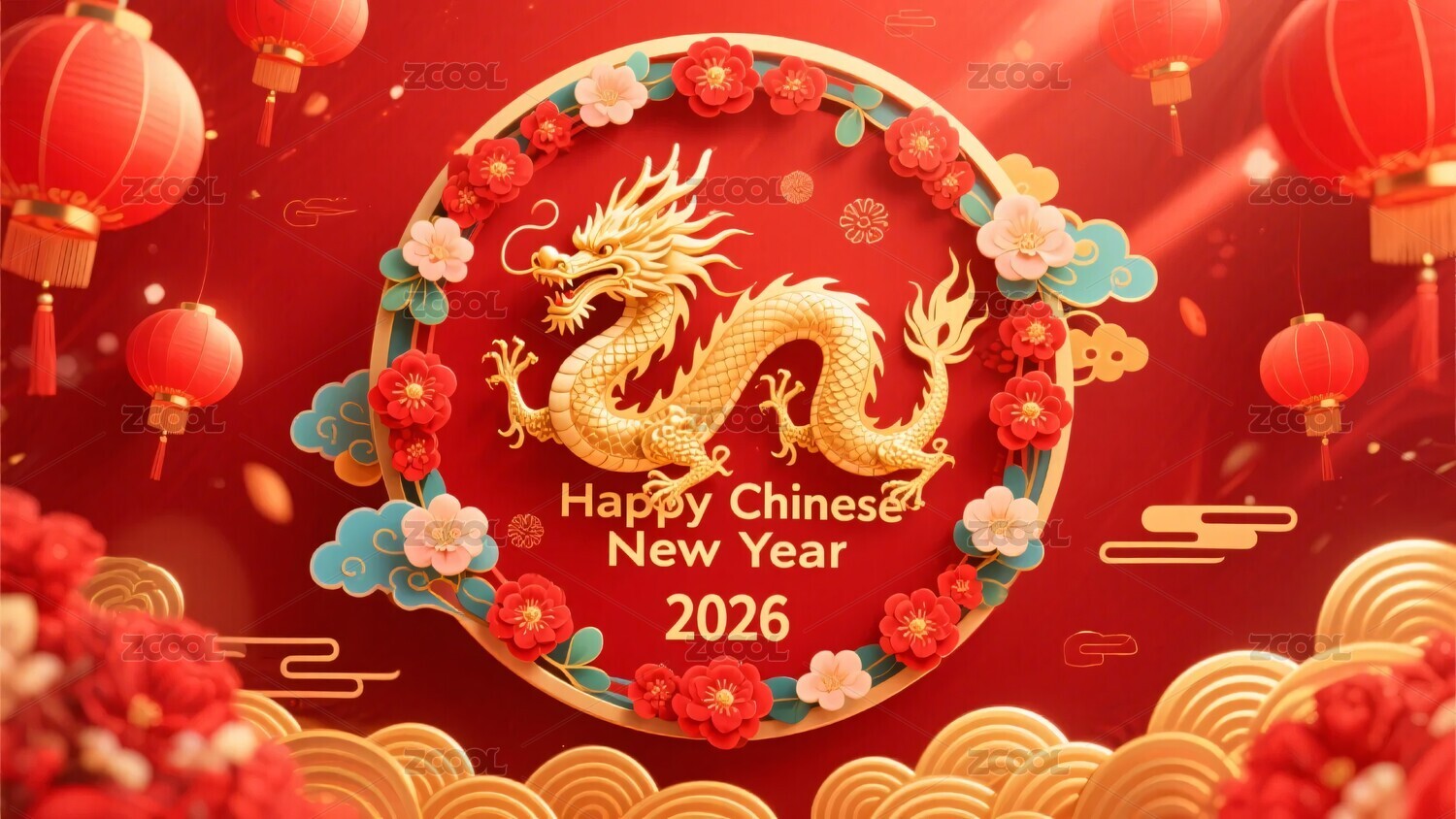 中国新年,灯笼,花朵,祥云,插画,红色,背景,节日,装饰,喜庆