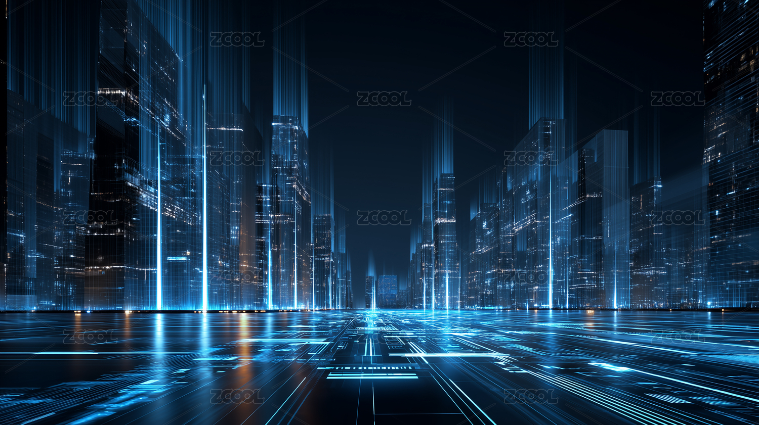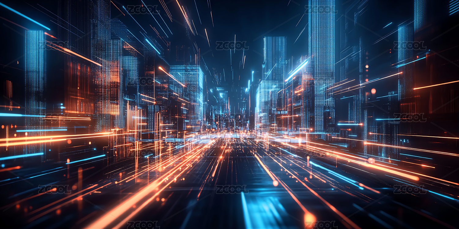 科技,物联网,城市,概念,背景,三维,夜空,空间,数据流,传输