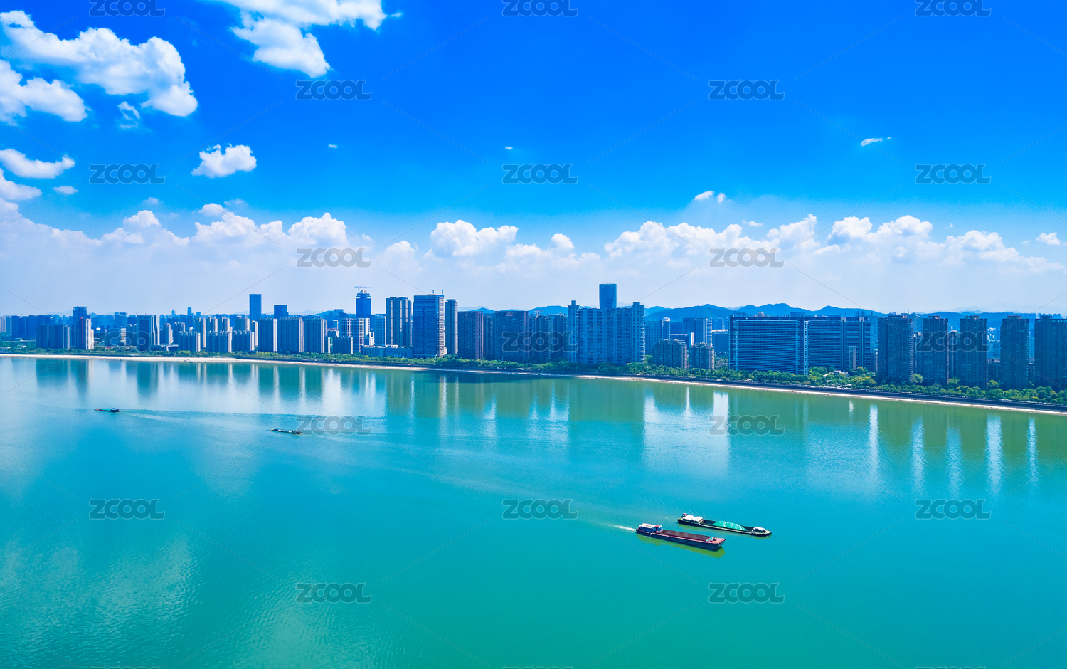 杭州,城市,航拍视角,滨江,钱塘江,桥,运输,航拍,景区,拥江发展