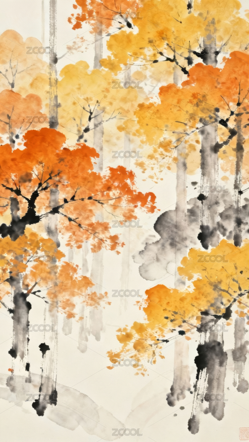 秋日枫林水墨画
