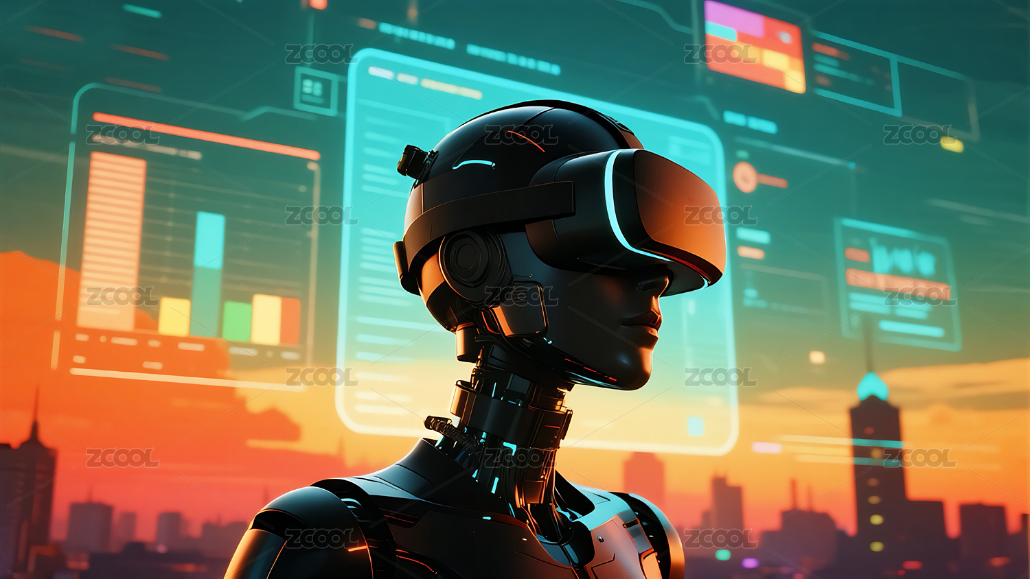机器人佩戴VR眼镜主题背景