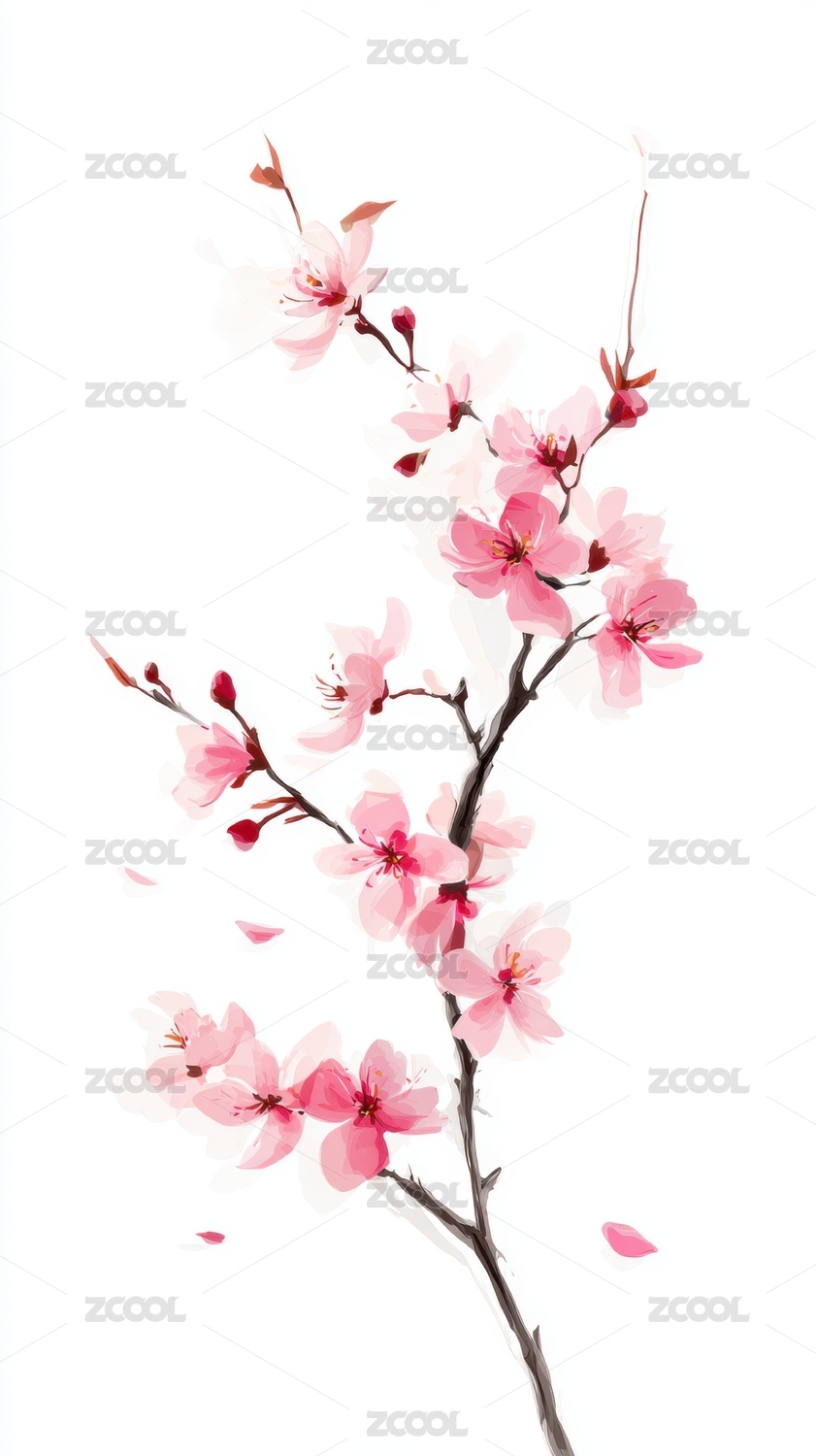 梅花,桃花,古风,中国风,红花,花朵,花卉,花艺,水墨画,禅意