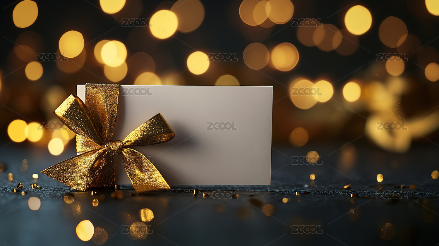 灯光照射下的桌子上的圣诞礼物特写镜头