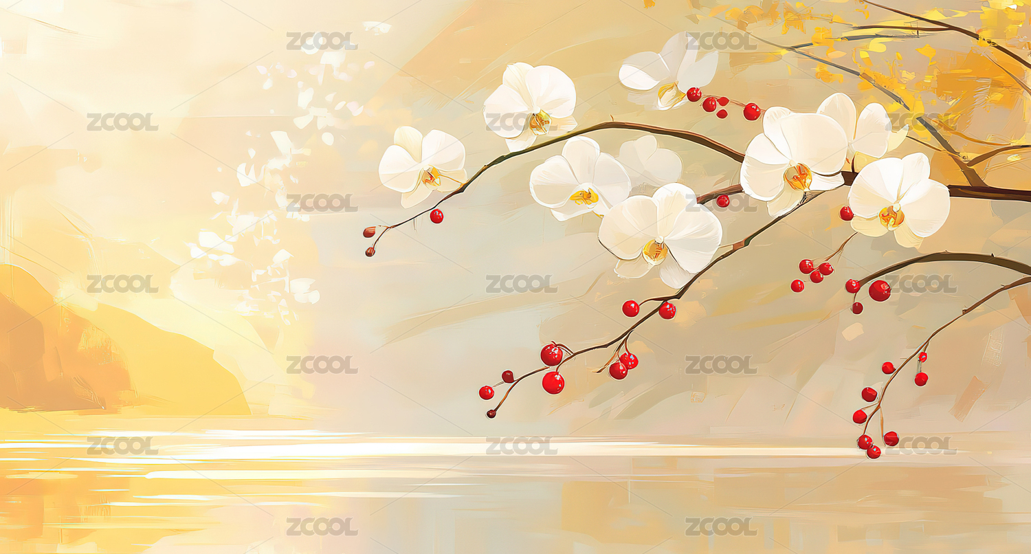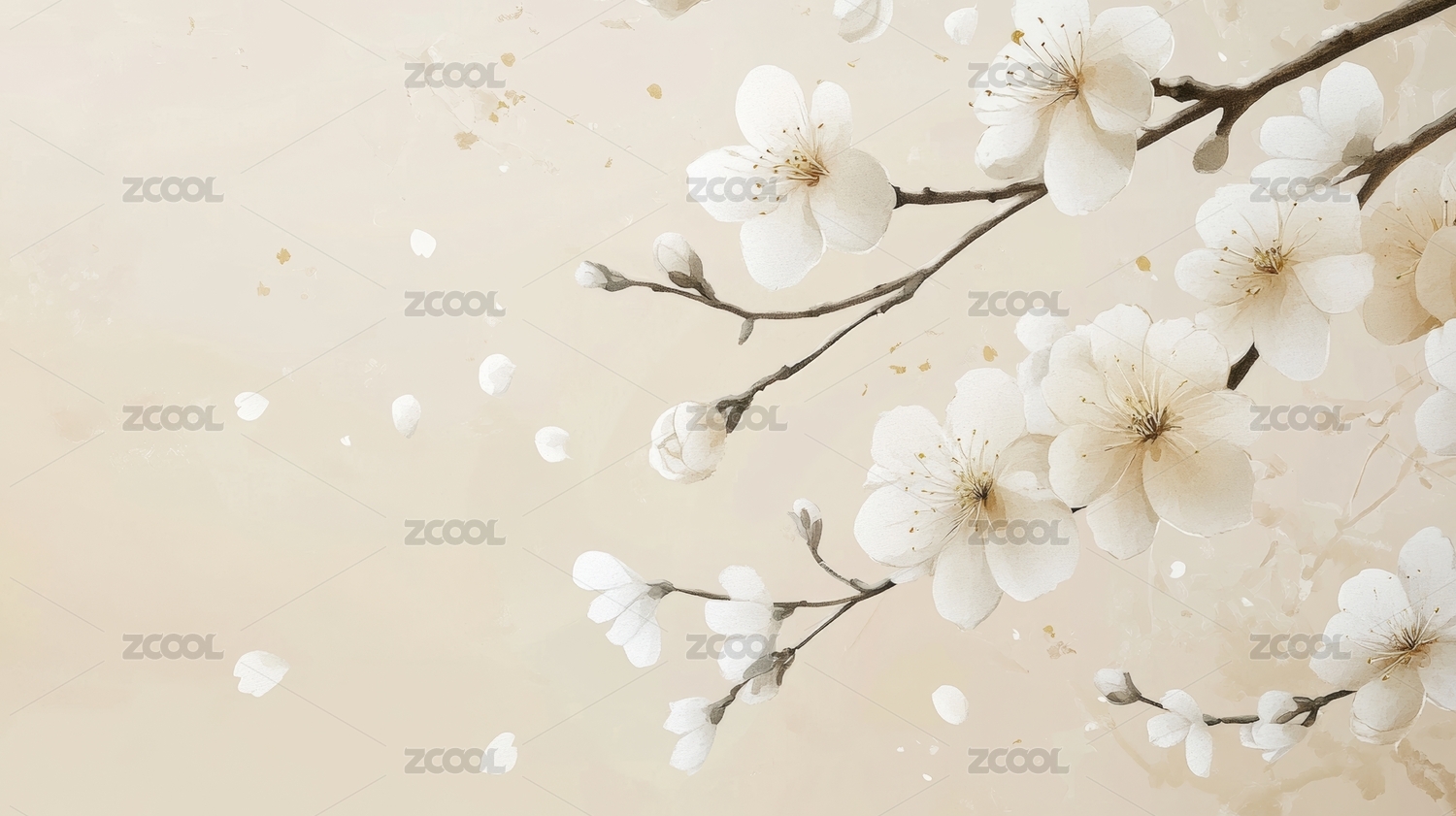 金色梅花枝映衬米色背景