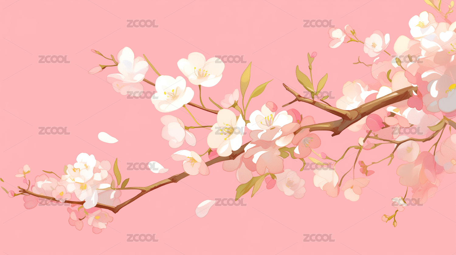 粉色桃花樱花唯美浪漫植物插画背景