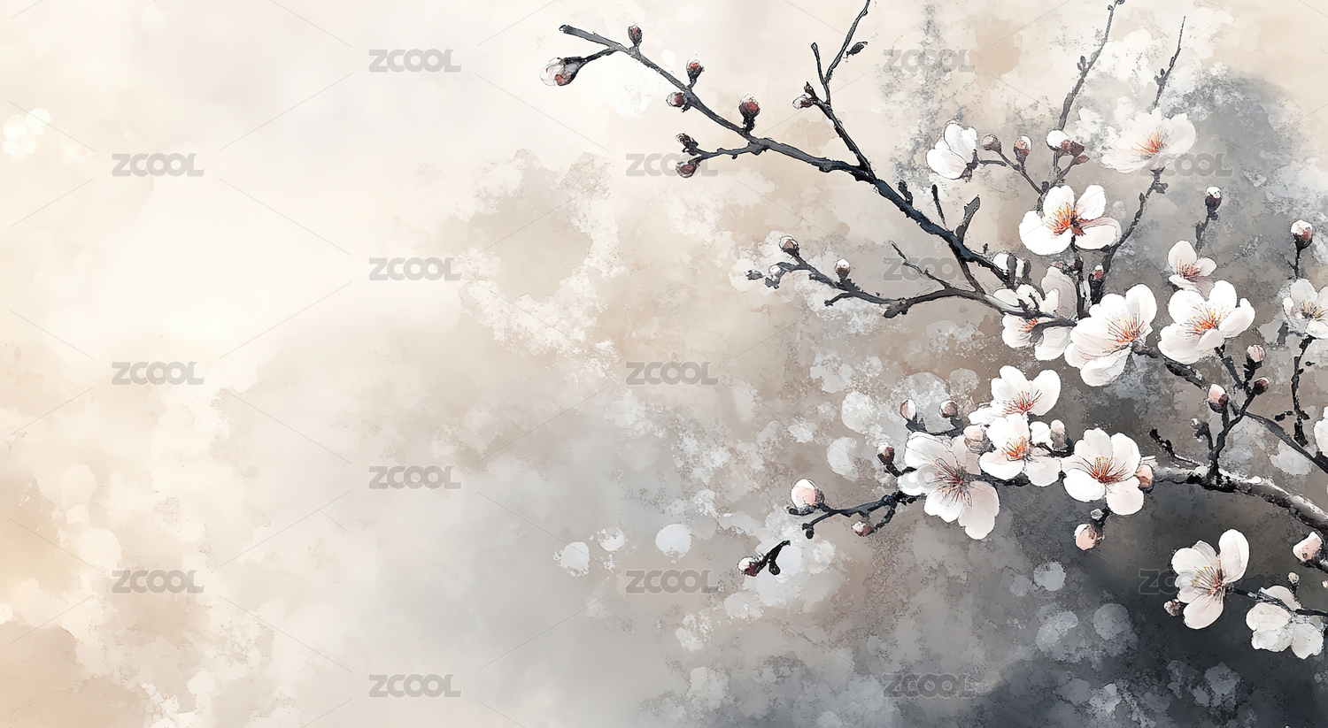 水彩梅花山脉背景