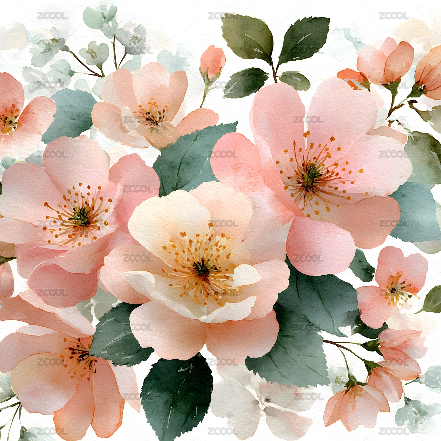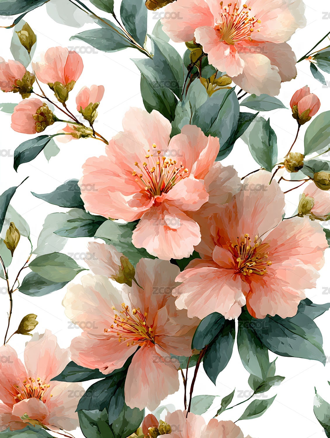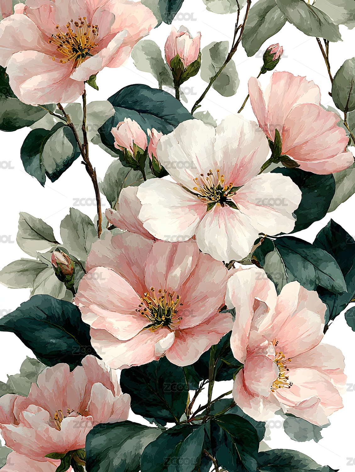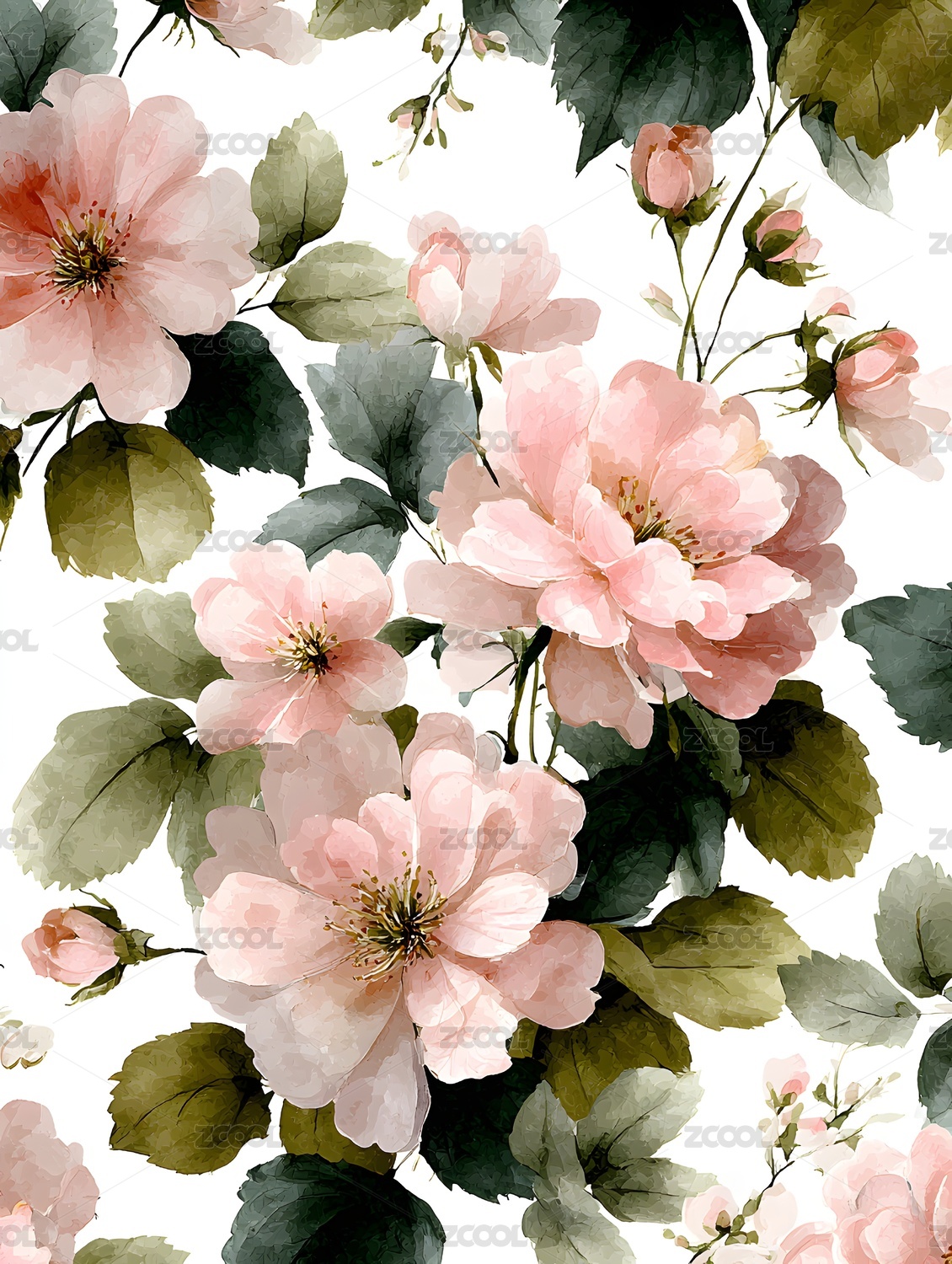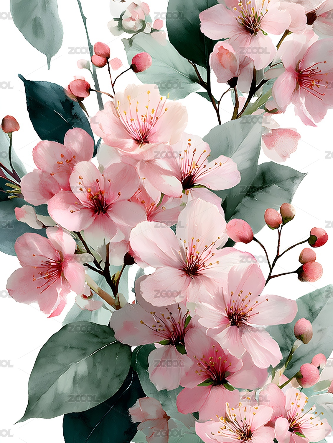花朵,花瓣,花蕊,粉色,花叶,花枝,花心,绿色,叶子,花丛