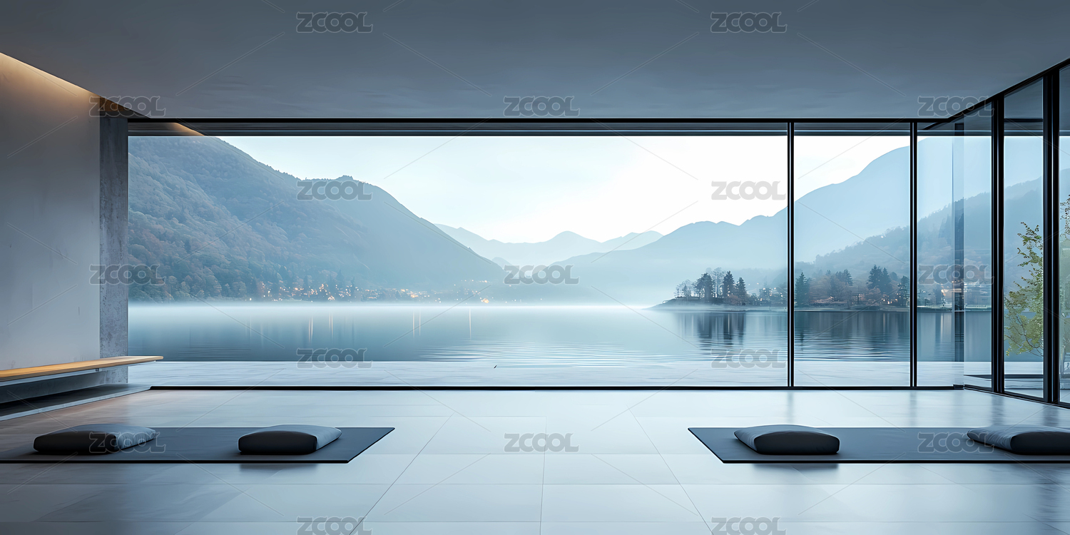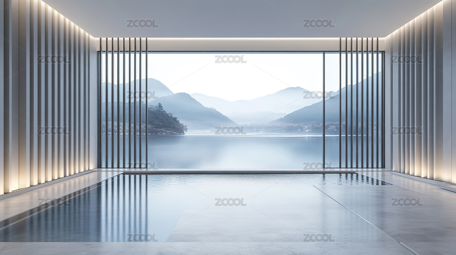 白昼,三维,场景,光影,滨水,宁静,反射,建筑,极简,高山