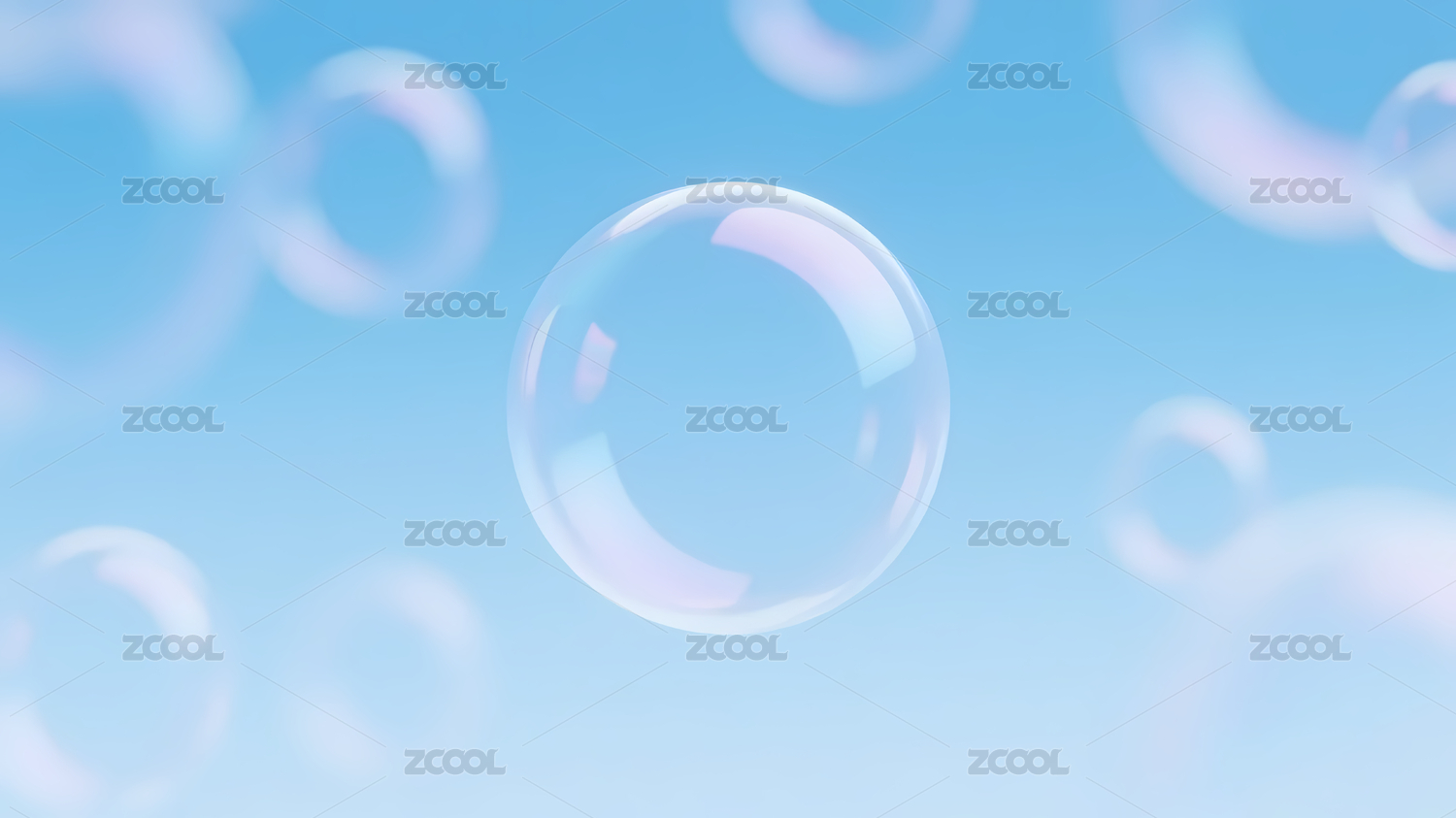 蓝色,气泡,水珠,透明,晶莹剔透,光影,三维,空间,渐变,彩虹