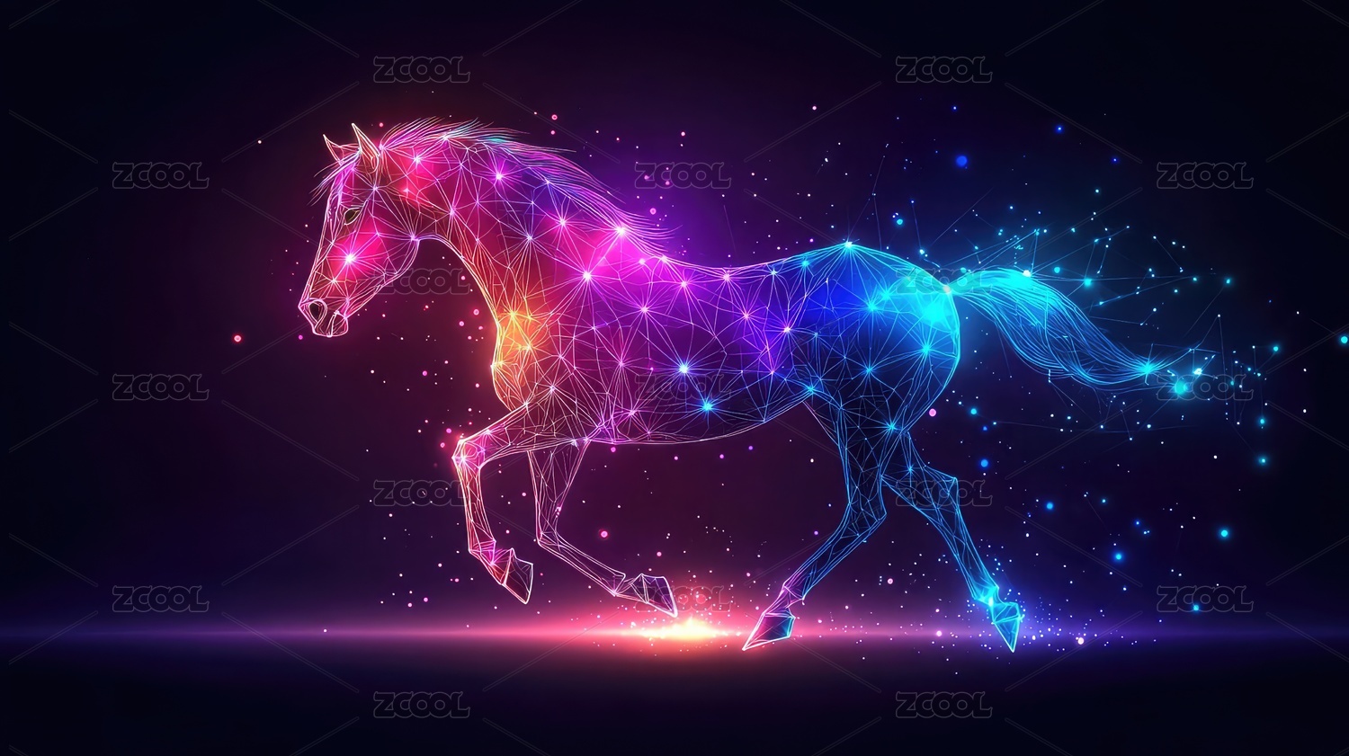 抽象发光马的科技风格图